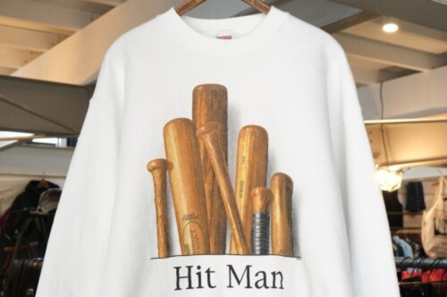 1851年にケンタッキー州ボーリンググリーンで創業された老舗カジュアルウェア・ブランド"FRUIT OF THE LOOM"から2000年代頃のスウェット。程よい厚さでしなやかなコットン×ポリエステル(90/10)混紡素材を使用し、爽やかなホワイトの色味と裏起毛による柔らかな肌触りが魅力のアイテムです。ざっくりとした着用に適したオフショルダーのボリュームあるシルエット、フロントに大きく入る木目や擦れた質感まで描き込まれたバットの写実的なグラフィックに"Hit Man"という強い言葉を重ねたスポーツ的な意味合いと過激さをあえて曖昧にしたプリントが目を惹く仕上がりとなっています。全体的に着用した様子のあまり感じられないたいへん良いコンディションですが、あくまでUSED品ですのでご理解の上ご検討ください。幅広いボトムスに合わせることのできる使い勝手の良さ、または落ち着きある綺麗めのアイテムと合わせた遊び心ある大人の外しとしても楽しんでいただける1本です。 □size: 表記XL (M-XL位) 肩幅 60cm/ 身幅 60cm/ 着丈 67cm/ 袖丈 63cm □comment: Model (171cm/ 58kg) 「全体的に大きめですがオーバーサイズの着用として可能なサイズ感でした」 □material: 90% cotton/ 10% polyester □color: ホワイト □condition: ☆☆☆☆☆(あくまでUSED品です) □label: FRUIT OF THE LOOM □Made in Mexico ――――――――――――――――――――― 実店舗との同時販売を行っておりますのでタイムラグによる売り切れの場合はご注文を頂いた商品をご用意できない場合もございます。予めご了承下さいますようお願いいたします。また、ご覧頂いているモニターにより実際の色と出方が異なる場合がございます。 下記リンクから『CUSTOMER GUIDELINES』を必ずお読みになってからご注文下さい。 https://www.garyovintage.com/customerguide.html