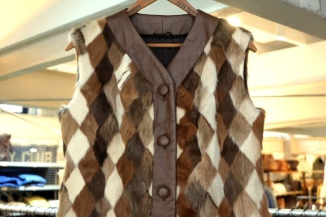 70年代頃のハラコパッチワークベスト。上質な素材を用い細部まで隙のない作りの良さが際立つ、フォークロアスタイルのロングベストです。シェイプされたウエストラインから裾にかけて優雅に広がるドレス型のシルエット、左右外側と左前立て内側にポケット付き。おそらく当時の職人の手による一点ものと思われ、毛並みの流れや模様の出方が様々な複数の牛革パネルを規則的に組み合わせたパッチワークが圧巻のデザイン。厚手サテン生地を使用した総裏地と前立てを縁取る装飾の作りも見事です。コンディションは良く、とくに目立ったダメージは見られません。年々希少価値が高まっているリアルファーとレザーのアイテム、中でも別格の存在感を放つ逸品ですので、衣装や写真撮影用などにもお勧めのアイテムです。 □size: 表記なし (7-9号/S-M位) 肩幅 39cm/ 身幅 43cm/ 着丈 85cm □comment: Model (158cm/7号/S) 「ややゆとりのあるサイズ感でした」 □material: 表記なし cowhide leather(?) □color: ブラウントーン □condition: ☆☆☆☆☆(あくまでUSED品です) ――――――――――――――――――――― 実店舗との同時販売を行っておりますのでタイムラグによる売り切れの場合はご注文を頂いた商品をご用意できない場合もございます。予めご了承下さいますようお願いいたします。また、ご覧頂いているモニターにより実際の色と出方が異なる場合がございます。 下記リンクから『CUSTOMER GUIDELINES』を必ずお読みになってからご注文下さい。 https://www.garyovintage.com/customerguide.html