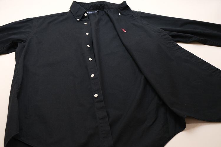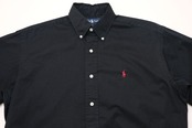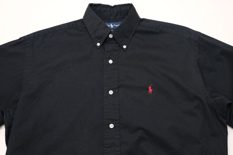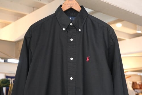 1967年にニューヨークで設立された世界的なファッション・ブランド"Ralph Lauren"から2000年代頃と思われるボタンダウン・シャツ。やや薄手でぱりっと張りのあるで100%コットン・ポプリンを使用し、単色ブラックのスマートの色味に大人っぽい雰囲気を感じるアイテムです。細すぎず太すぎない程よいシルエット、左胸ポケットに入る赤いワンポイント"PONY"刺繍がアクセントとなっています。着用の上で問題となるダメージや汚れはございませんが、全体的に着用感のあるUSEDコンディションですのでご理解の上ご検討ください。デニムからスラックスまで幅広いボトムスにさらっと合わせるだけでカジュアルながら上品で清潔感ある印象を演出でき、1枚でさらっとした着こなしからボタンを留めずにTシャツの上からさらっと羽織るコーディネートにもおすすめです。