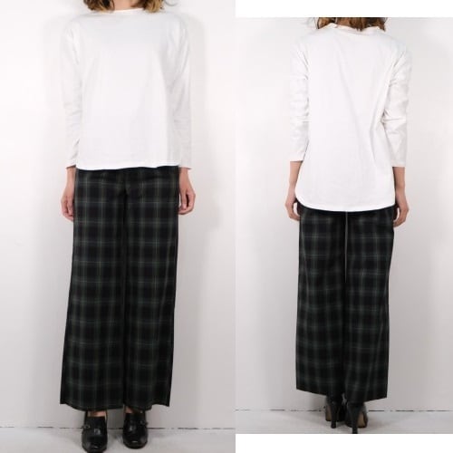 2004年設立アメリカ・カルフォリニア発のファッションブランド"BRIXTON"より、チェック柄のワイドパンツ。ワイドシルエットながら軽快な印象とはき心地が魅力の一品です。ハイウエストのノータック、腰から裾までシャープに伸びるワイドストレートシルエット。裾は切りっぱなしのデザインになっています。伸縮性のあるコットンベースの生地は美しいシルエットを保ち、快適な動きやすさも魅力です。コンディションは良く、とくに目立ったダメージは見られません。深い色みのチェック柄が雰囲気良く、カジュアルなスウェットなどにも綺麗めのシャツにも幅広くマッチします。