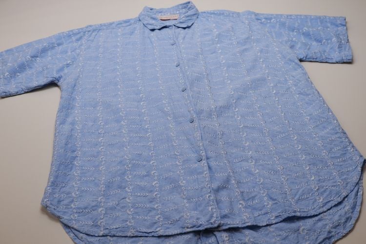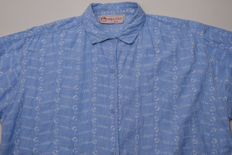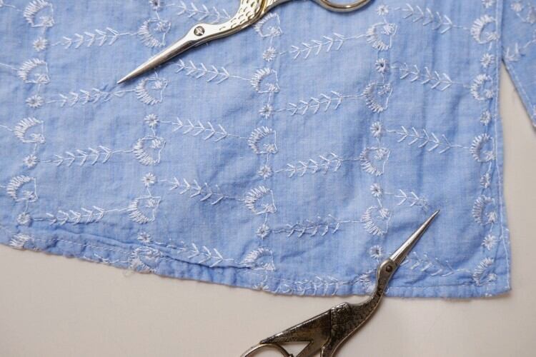 60's embroidered chambray long tail Shirt