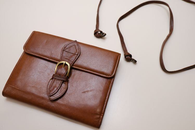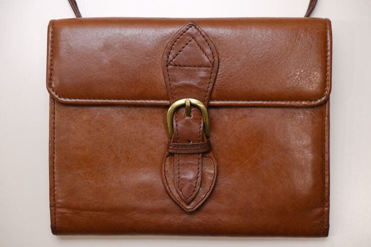 80's handcrafted leather shoulder Bag/ wallet convertible