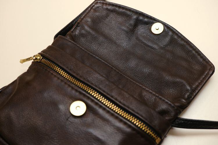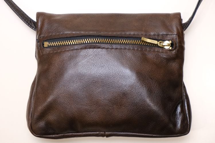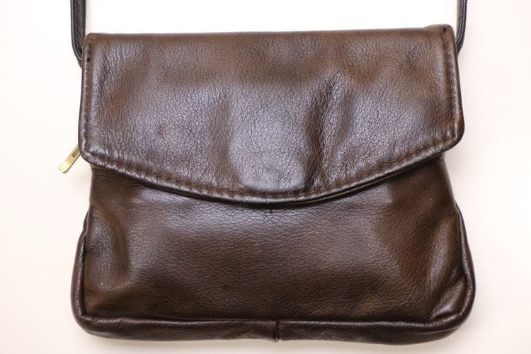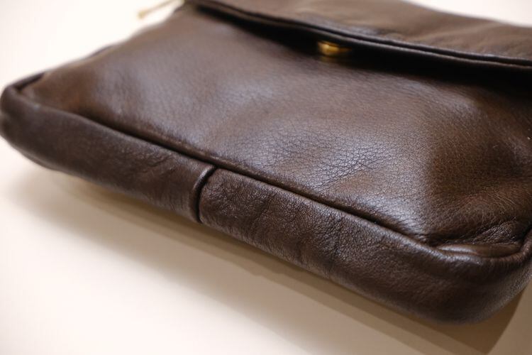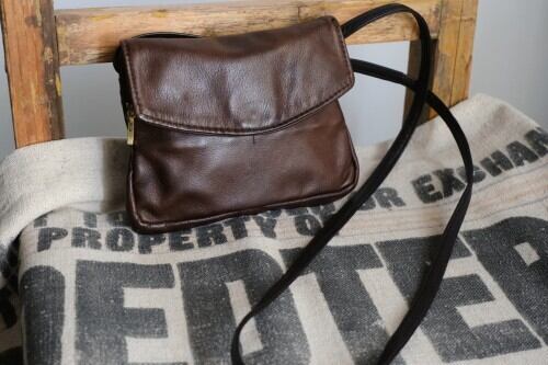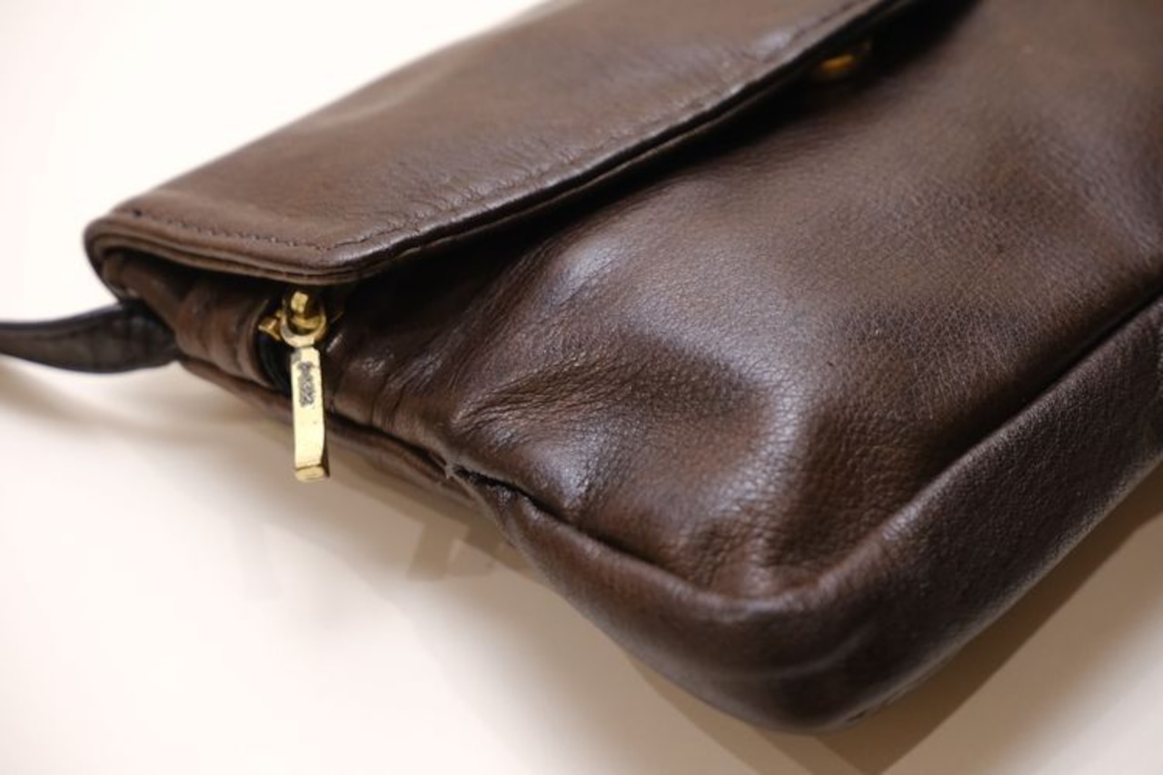 2000年代頃のブラウンレザーのショルダーバッグ。現在は終了してしまったアメリカのレザーバッグ専門ブランド"Victoria Leather Co."のアイテムで、小振りながらハンドクラフトによるしっかりとした作りの良さがうかがえる一品です。3つに分かれた収納にマグネット開閉のフラップ付き、背面にもジップポケットが付属しています。自然なシボが雰囲気の良いレザーは使い込むと味わいを増し、変化していく表情もお楽しみいただけます。とくに目立ったダメージはございませんが、多少の使用感が見られますのであくまでUSED品とご確認の上ご検討ください。車でのお出掛けや旅行の際など、ポケット代わりに活躍してくれそうです。