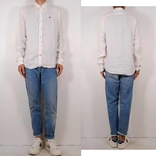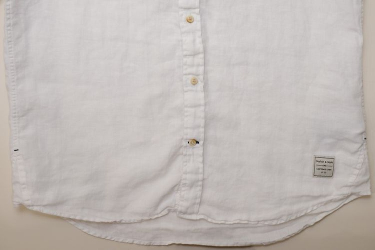 1985年創業のオランダを代表するファッション・ブランド"SCOTCH & SODA"『スコッチ・アンド・ソーダ』からシャツ。程よい厚さで粗めに織られた100%リネンを使用し、ホワイトのやわらかな色味にナチュラルな雰囲気の良さを感じるアイテムです。肩幅と身幅のバランスにクセのないすっきりめのシルエット、小ぶりなボタンダウン・カラー、マチ付き、前合わせ(ボタン側)に細かなステッチ・ワークを施したディテールの良さ、左裾口のパッチと左胸に刺繍で施されたブランド・アイコンがアクセントとなっています。着用の上で問題となるダメージや汚れはございませんが、全体的に着用感のあるUSEDコンディションですのでご理解ご検討ください。リネンらしい清涼感とホワイトの色味による大人っぽさがたいへん良く、幅広いボトムスに合わせることのできる使い勝手の良い1本です。