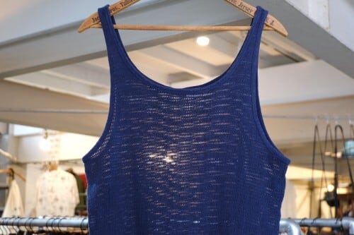 80年代ネイビーカラーのメッシュタンクトップ。レイヤードスタイルに活躍してくれる、古いアスレチックトップです。深いネックラインとアームホール、華奢なストラップが特徴のシルエット。メッシュのため伸縮性が高く、ストレスフリーの着心地でお楽しみいただけます。コンディションとして全体的に多少の着用感がや色褪せなど見られますのでUSED品とご確認の上ご検討ください。いつものTシャツに重ねるだけでも表情が変わり、スタイリングの幅を広げてくれるアイテムです。
