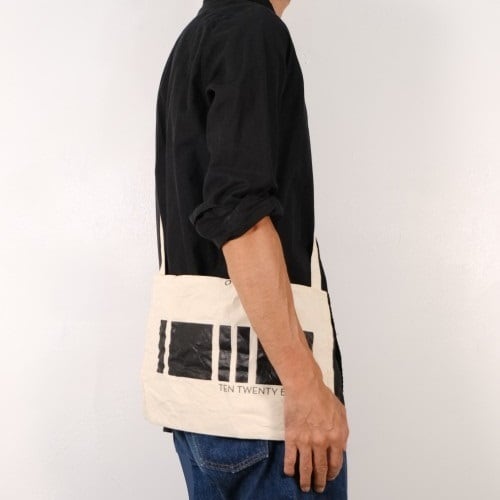 ドイツの"TEN TWENTY BERLIN"のショルダー・バッグ。やや薄手で粗めのキャンバスにブラックで大胆に施されたプリント、やや短く斜めがけのできるワン・ショルダーによる動きやすさが魅力のアイテムです。コンディションは良く、とくに目立ったダメージは見られません。