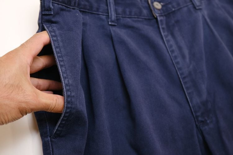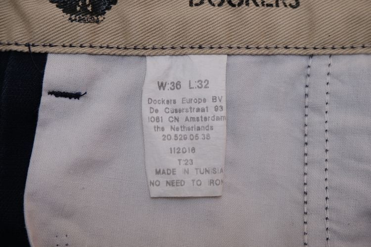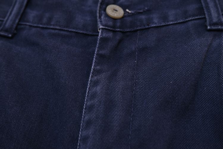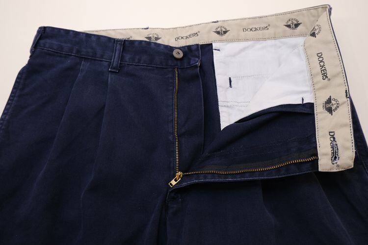 "Levi's"ブランドのひとつとして1986年に誕生した"DOCKERS by Levi's"から90年代頃と思われるパンツ。かなり厚手でタフな100%コットン・ツイルを使用し、着用と経年により程よくフェードしたダークネイビーの色味にこなれた風合いを感じるアイテムです。腰回りにゆとりのある股上の深いツータック、広いワタリから裾口に掛けてテーパードを効かせたワイド・シルエットが特徴となっています。着用の上で問題となるダメージや汚れはございませんが、全体的に着用感のあるUSEDコンディションですのでご理解の上ご検討ください。リラックスして履いていただけるボリュームあるシルエットがたいへん良く、こちらのアイテムは"DOCKERS"のヨーロッパ企画でリリースされた珍しい1本ですので気になる方は是非ご検討ください。