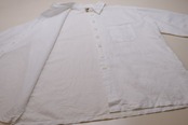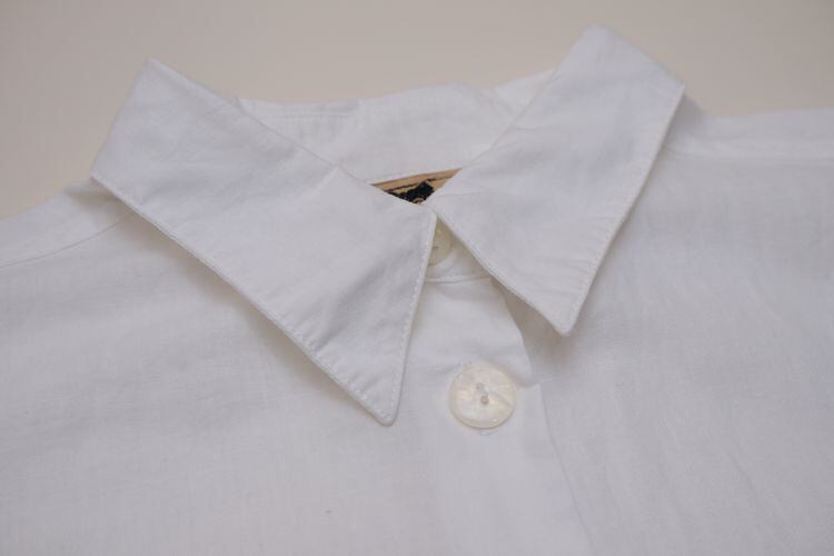 90年代のリネン×コットンシャツ。媚びないマニッシュな表情に、清潔感のある素材の持ち味が引き立つ一品です。全体的にゆったりめ、サイドスリット入りの長めの着丈が特徴のボックス型ドレスシャツスタイルに、大きなボタンがアクセントになったデザイン。リネンとコットン混紡素材の生地は淡いザラ感とネップの混じる素朴な風合いに優れ、自然な肌触りと軽い着心地も魅力です。コンディションは良く、とくに目立ったダメージは見られません。ベーシックとして幅広いスタイリングに馴染み、ロングシーズン活躍してくれるアイテムです。