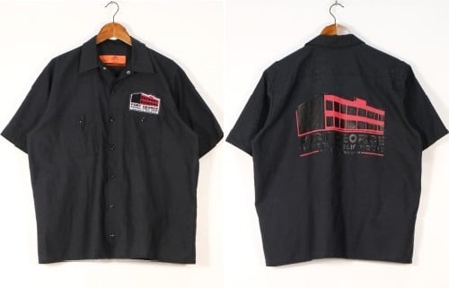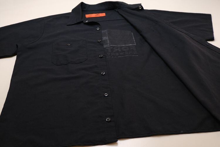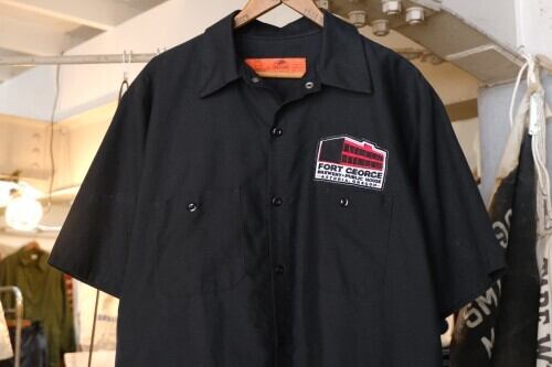 1923年にテネシー州ナッシュビルで創業されたワークウェア・ブランド"RED KAP"から2000年代後期頃と思われるワーク・シャツ。程よい厚さでぱりっと張りのあるポリエステル×コットン(65/35)混紡素材を使用し、単色ブラックの色味がスマートな雰囲気のアイテムです。ざっくりとした着用に適したシルエット、スナップ・ボタン留めのオープン・カラー、両胸ポケット、左胸にオレゴン州アストリアのブリュワリー"FORT GEORGE BREWERY"のパッチ、バックに大きくプリントされた建物をモチーフにしたロゴが目を惹くデザインとなっています。着用の上で問題となるダメージや汚れはございませんが、全体的に着用感のあるUSEDコンディションですのでご理解の上ご検討ください。幅広いパンツに合わせるだけでワーク・スタイルのコーディネートを楽しめ、こちらは"FORT GEORGE BREWERY"社で従業員に配られたと思われる販売用ではない1本ですので気になる方は是非ご検討ください。