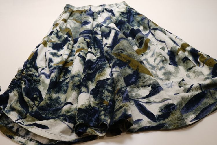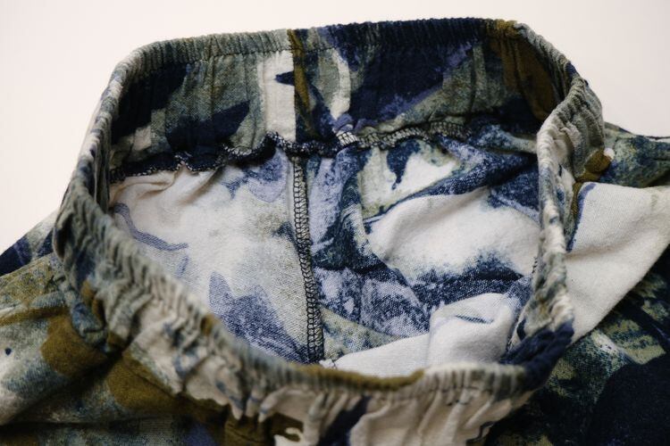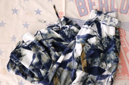 □size: 表記なし ウエスト 60-92cm(ゴム入り)/ 股上 49cm/ 股下 27cm/ 裾幅 63cm