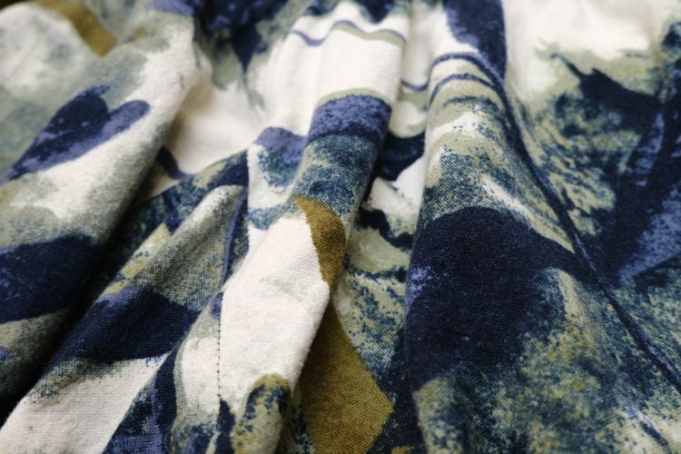90年代頃の抽象柄バルーンパンツ。ユニークな立体パターンを使用した、ボリュームシルエットが素敵なガウチョパンツです。腰まわりに丸みを持たせた4枚剥ぎの作りに、両サイドにギャザーを寄せられるリボン付きのデザイン。やや粗めに織り上げられた100%コットンと思われる生地は見た目より軽く柔らかな風合いで、ウエストゴム仕様のリラックスした着心地も魅力です。コンディションは良く、とくに目立ったダメージは見られません。シンプルなトップスに合わせるだけで個性を演出でき、シーズンレスにお楽しみいただけます。
