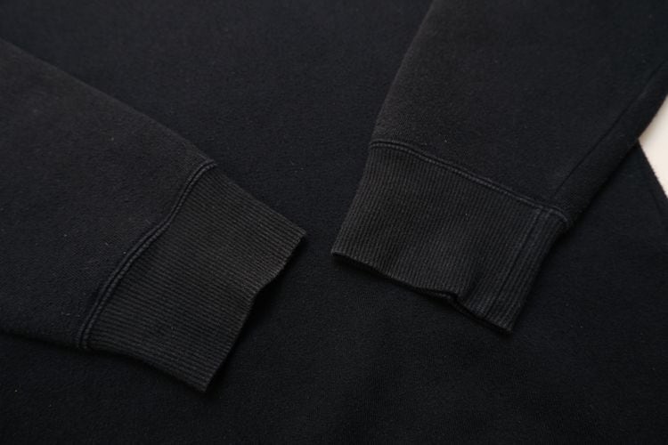 1976年にペンシルベニア州バンガーで設立されたアスレティック・ウェア・ブランド"Majestic Athletic"『マジェスティック・アスレティック』から90年代後期頃と思われるスウェット。厚手でしっかりと目の詰まった100%コットン・スウェット地を使用し、単色ブラックで仕上げた見た目にスマートな印象のアイテムです。肩幅に対してやや身幅が狭くアーム・ホールとアームが細めのすっきりとしたシルエット、フロントにニューヨークのメジャーリーグ・ベースボール・チーム"NEW YORK METS"のレタリングと左袖にはロゴ・パッチが配されたブラックに映えるデザインとなっています。着用の上で問題となるダメージ汚れはございませんが、全体的に着用による毛羽立ちがあるUSEDコンディションですので普段から古いものをご愛用の方におすすめ致します。ワイドからスリムまで幅広いパンツと合わせることができ、表記"L"ですがやや小ぶりなサイズ感のため男性だけでなく女性のオーバーサイズとしての着用もおすすめできる1本です。