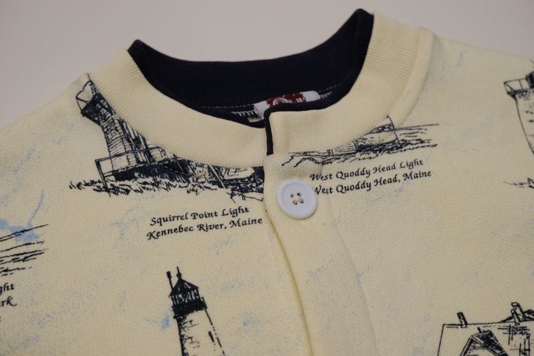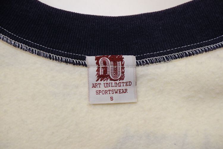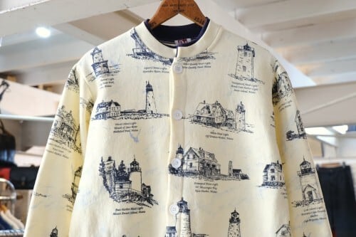 1974年設立されたスポーツウェアブランド"ART UNLIMITED SPORTSWEAR"より、80年代プリント柄のスウェット・カーディガン。自然モチーフのグラフィックや全面プリントを得意とするブランドで、こちらはアメリカ・メイン州各地に佇む灯台が描かれたクラシックなテキスタイルが印象的なアイテムです。すっきりとしたシルエットにダブルカラー、ポケット付きのデザイン。コットンベースの混紡裏起毛スウェットはふっくら柔らかな風合いとアイボリーの優しい色みが特徴です。コンディションとして多少の着用感があり、ネイビーのネックリブに色褪せなど見られますのでUSED品とご確認の上ご検討ください。コンパクトなサイズのため、ジャケット感覚で綺麗めの着こなしにもマッチする一品です。