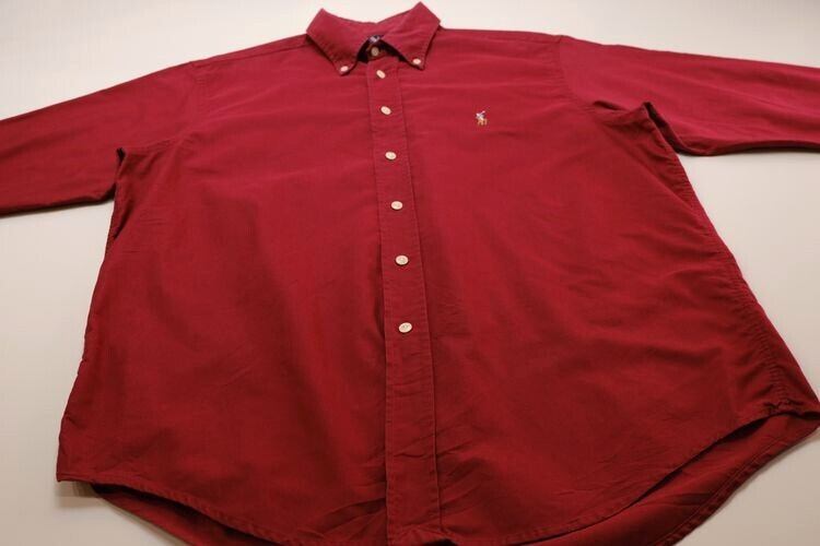 1967年にニューヨークで設立された世界的なファッション・ブランド"Ralph Lauren"から90年代初期頃と思われるボタンダウン・シャツ。程よい厚さでしっかりと織られた100%コットン・オックスフォードを使用し、単色ワインレッドの色味に大人っぽくエレガントな雰囲気を感じるアイテムです。リラックスした着用に適したゆとりのあるシルエット、左胸に入るカラフルなワンポイント"PONY"刺繍がアクセントとなっています。着用の上で問題となるダメージや汚れはございませんが、フロントの右脇下中程に色褪せのあるUSEDコンディションですのでご理解の上ご検討ください。デニムからスラックスまで幅広いボトムスにさらっと合わせるだけでカジュアルながら上品で清潔感ある印象を演出でき、ジャケットやコートの中から覗くアクセントとしても楽しんでいただける1本です。