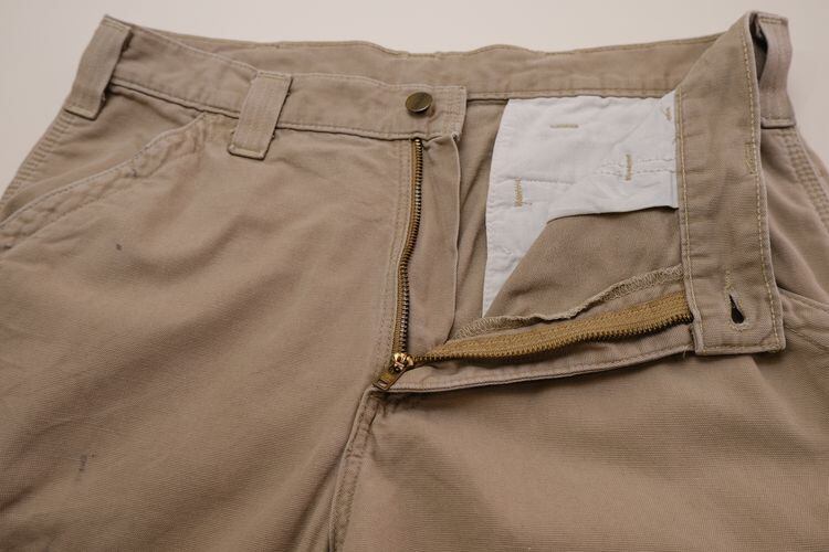 1889年"Hamilton Carhartt"によってミシガン州デトロイトで創業された"Carhartt"『カーハート』から2000年代頃のパンツ。厚手でずっしりとした100%コットン・ダック地を使用し、着用と経年によりフェードしたサンドベージュの色味がたいへん風合いの良いアイテムです。深めの股上とヒップから太ももにかけてゆとりを持たせたストレート・シルエット(Dungaree Fit)、両サイドに配されたカーゴ・ポケット、トリプル・ステッチ、そして実際の作業により付いたペンキ汚れが大きな魅力となってます。着用の上で問題となる大きなダメージや汚れはありませんが、各所にペンキ汚れのある着古されたコンディションですのでこの1点ものらしさを好まれる方におすすめ致します。ワーク・アイテムらしくサーマルやワーク・シャツと合わせたり、少し外したスタイルとしてボタンダウン・シャツに合わせたりと幅広い着こなしを楽しめ、シンプルなコーディネートに取り入れるだけでヴィンテージ・テイストをプラスできる1本です