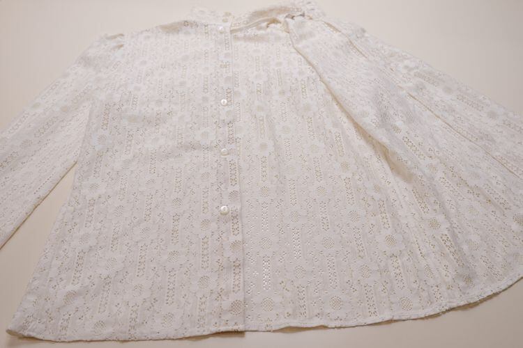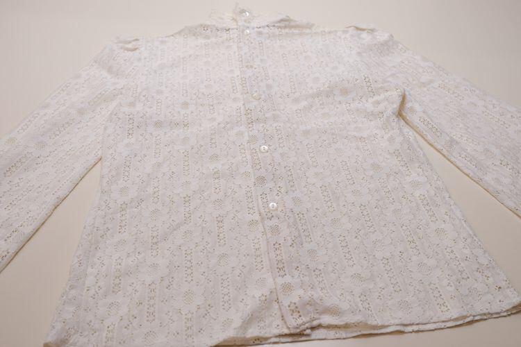 60年代総レースのヴィクトリアンブラウス。繊細なシアーレースを使用した、可憐な佇まいが目を引くヴィンテージブラウスです。ややシェイプされたフィットシルエットに、フリルをあしらったヨーク、ハイネックにパフスリーブ、バックボタンアップのデザイン。花模様の透かしレース生地は素肌に着用し素敵なのはもちろん、インナーを合わせてロングシーズンお楽しみいただけます。コンディションとして多少の着用感があり、右カフスのボタンまわりに生地のリペアがございますのでUSED品とご確認の上ご検討ください。マキシ丈のスカートなど合わせたボヘミアンスタイルはもちろん、マニッシュなパンツスタイルなどとギャップのある着こなしも素敵です。