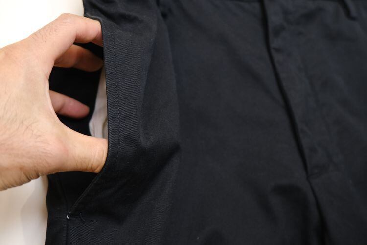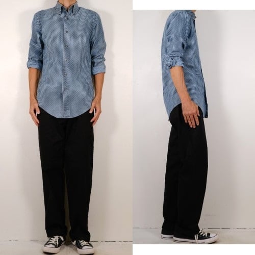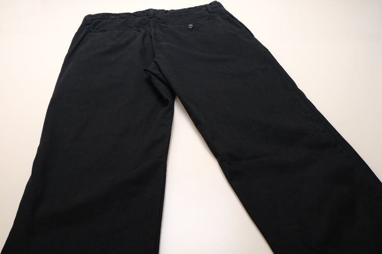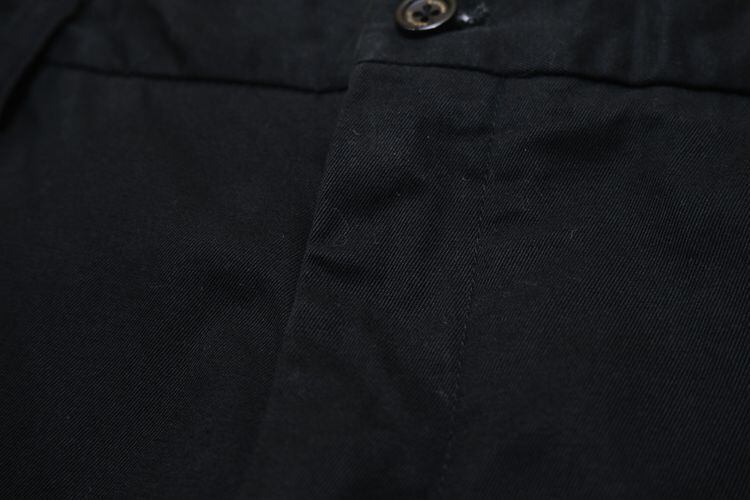 1978年にカリフォルニア州ミルバレーで創業された"BANANA REPUBLIC"から2000年代(08/SUM)のパンツ。なめらかな肌触りと程よい艶が特徴の高級エジプト綿(100%)を使用し、単色ブラックのスマートな色味に魅力のあるアイテムです。程よい深さの股上にすっきりとした印象のノータック、太めのワタリから裾口にかけてテーパードを効かせたストレート・シルエットが特徴となっています。着用の上で問題となるダメージや汚れのない良いコンディションですが、全体的に着用感のあるUSEDコンディションですのでご理解の上ご検討ください。ゆったりとリラックスして履いていただける太いシルエットと落ち着いた色味で、カジュアルながら大人っぽい印象を演出できるおすすめの1本です。