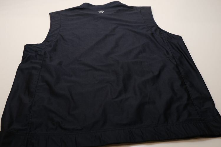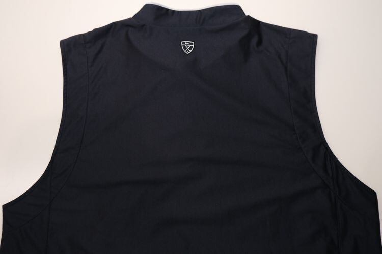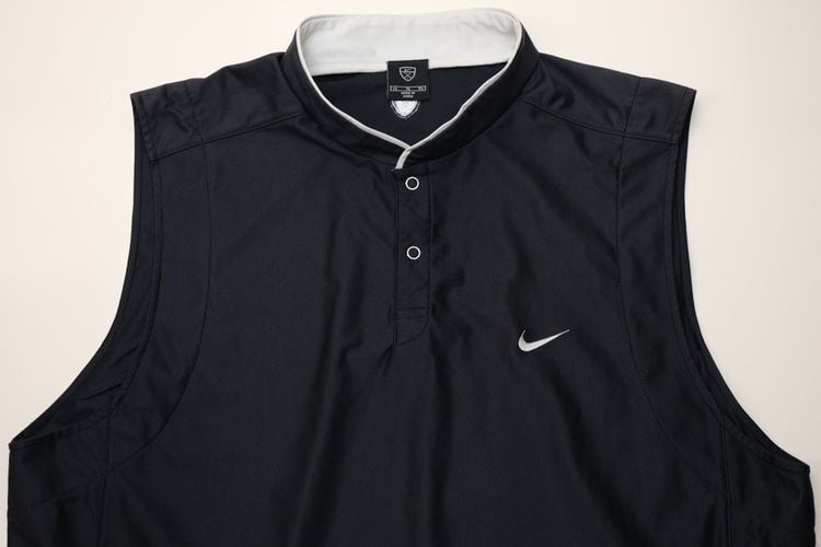 世界最大のスポーツ・ブランド"NIKE"から1998年に設立されたゴルフ・ライン"NIKE GOLF"から2000年代頃のベスト。薄手でやわらかな肌触りのの100%ポリエステルを使用し、単色ブラックの色味に左胸に入る"SWOOSH"ロゴが映えるアイテムです。すっきりとした着用に適したシルエット、ボタンアップ・プルオーバー、スラッシュ・ポケットのシンプルなデザインに、首まわりのホワイトの切り替えがアクセントとなっています。着用の上で問題となるダメージや汚れはございませんが、全体的に着用感のあるUSED品ですのでご理解の上ご検討ください。幅広いボトムスに合わせることのできるシンプルなデザインと軽量な着心地が良く、1枚持っているとたいへん重宝するベストです。