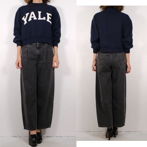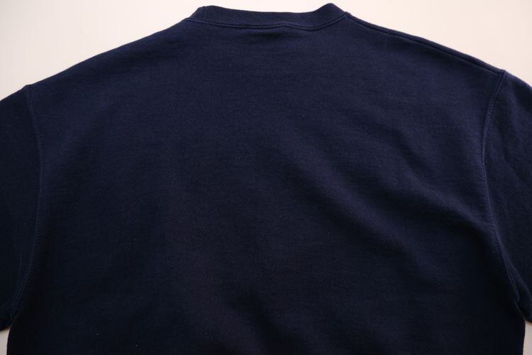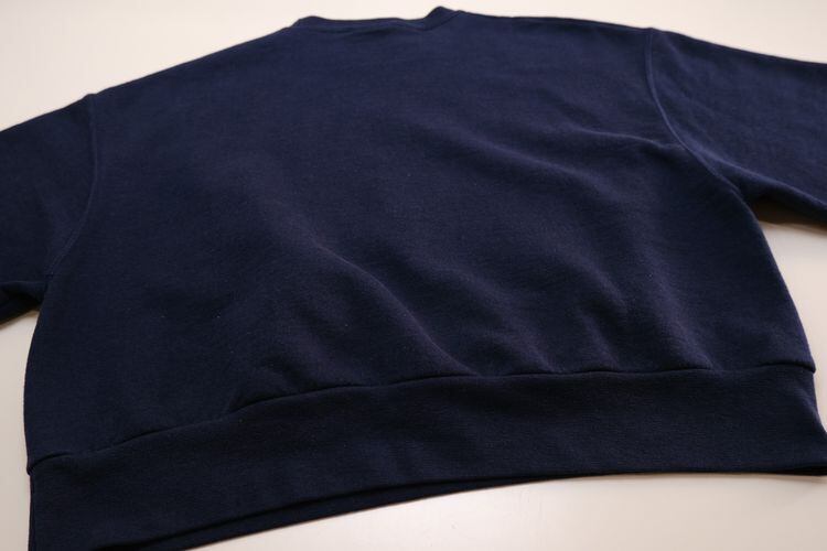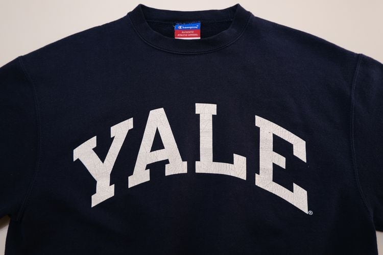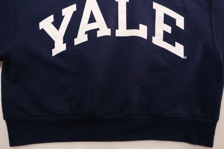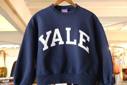 1919年"Champion Athleticwear"としてニューヨーク州ロチェスターで設立されたアスレチックウェア・ブランド"Champion"から2000年代頃ネイビーカラーのスウェット。おそらくリサイズされた一品と思われ、コンパクトな着丈と袖丈のバランスがレディース向きに仕上げられています。セットインスリーブにざっくりとしたアーム、九分丈の袖にジャストの着丈が特徴的なシルエット。経年によりクラックした"YALEのプリントがたいへん味わい深く、新しいものには見られない魅力があります。やや薄手の生地ながらもしっかりとした素材感にチャンピオンブランドらしさが感じられ、着用と経年により変化した色味と毛羽立った素材の表情に1点ものらしい雰囲気の良さを感じます。全体的に多少の着用感が見られますのでUSED品とご理解の上ご検討ください。さらりと着用するだけでこなれた着こなしが完成し、大人のカジュアルスタイルにもお勧めです。