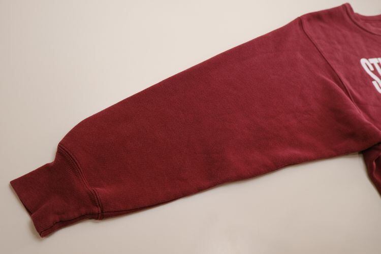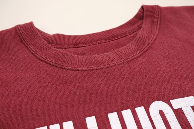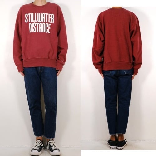 1919年"Champion Athleticwear"としてニューヨーク州ロチェスターで設立されたアスレチックウェア・ブランド"Champion"から2000年代頃のリバースウィーブ。厚手でしっかりとしたコットン×ポリエステル(82/18)混紡素材を使用し、両脇のリブ編み、ゆとりのあるアームのシルエットが特徴的なチャンピオンのロングセラー・アイテムです。リバースウィーブらしいワインレッドのカラーに、着用と経年による少しやれた素材感と褪せた色味に新品とは違うこなれた風合いがあり、フロントにホワイトで入る"STILLWATER DISTANCE"のクラックした2段プリントがたいへん存在感のある仕上がりとなっています。着用の上で問題となるダメージや汚れはございませんが、全体的に着用による毛羽立ちのあるUSEDコンディションですのでご理解の上ご検討ください。シンプルなボトムスと合わせるだけでヴィンテージ・テイストあるコーディネートを演出でき、着丈が短いシルエットのため、オーバーサイズの着用として女性にもおすすめできる1本です。
