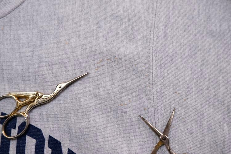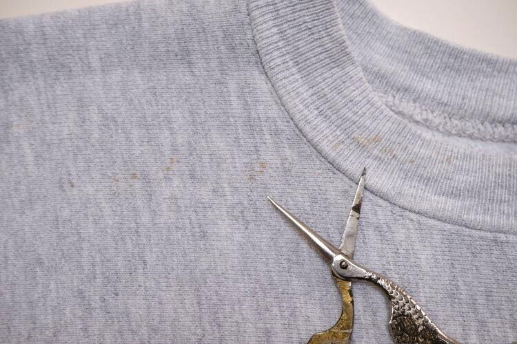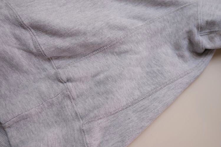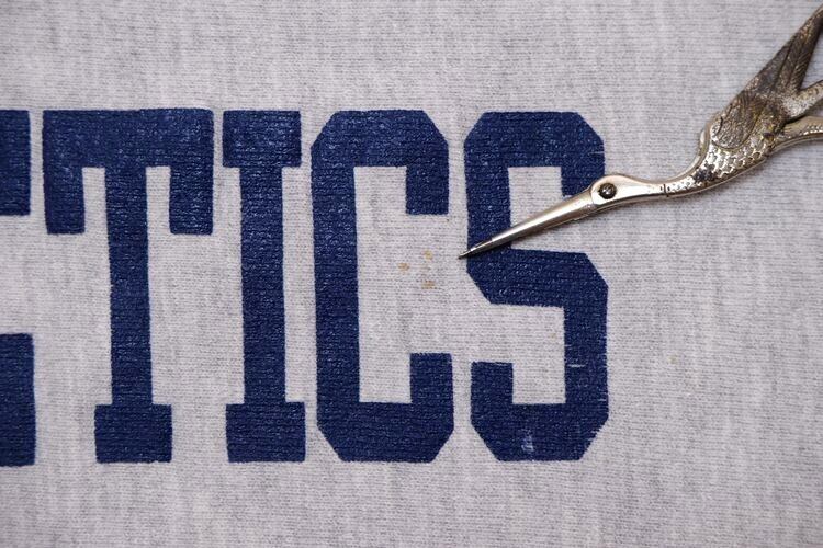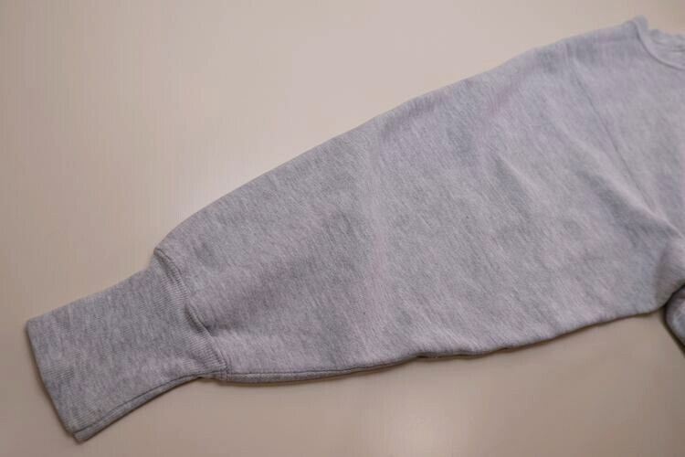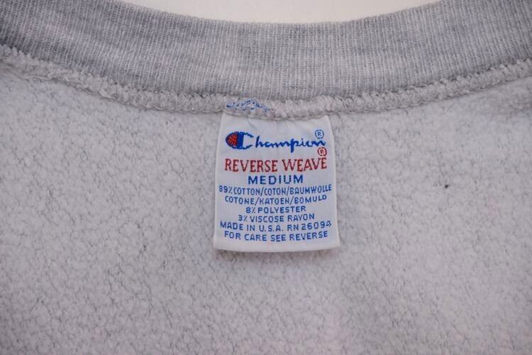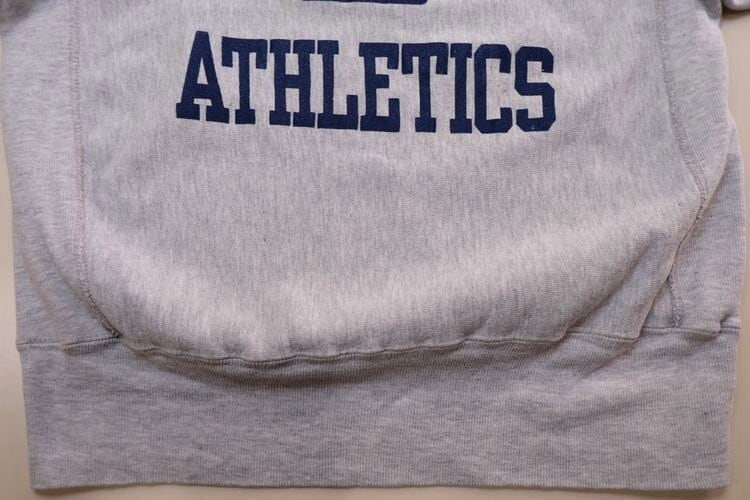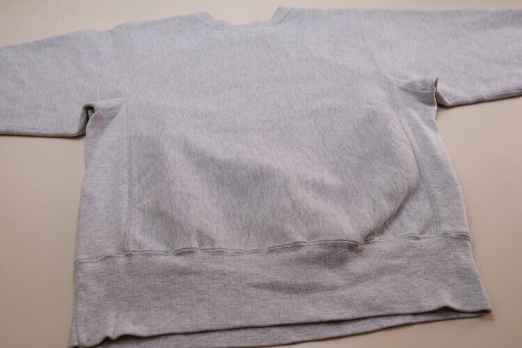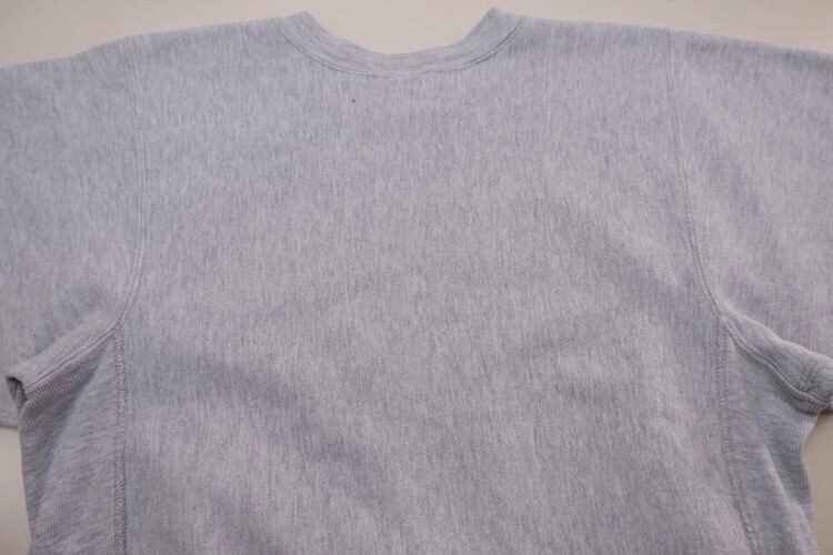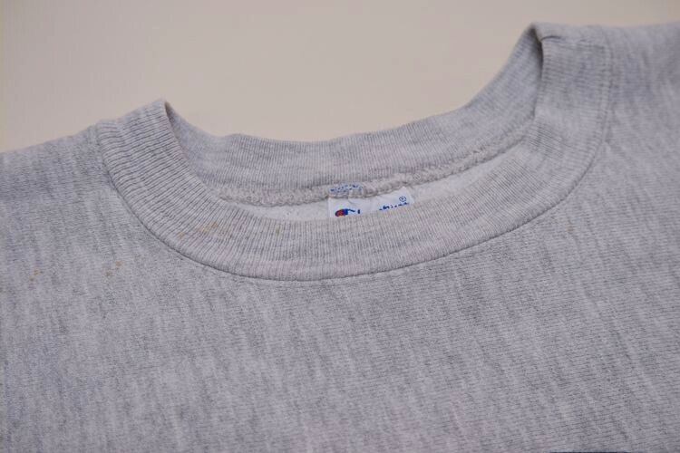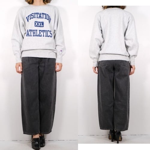 1919年"Champion Athleticwear"としてニューヨーク州ロチェスターで設立されたアスレチックウェア・ブランド"Champion"から90年代アメリカ製の刺繍タグ・リバースウィーブ・スウェット。特有の厚手でしっかりとした混紡生地を使用し、ゆとりのあるアームのシルエットにワイド幅のリブ、両脇のリブ編みパネルが特徴的なチャンピオンのロングセラー・アイテムです。リバースウィーブらしい霜降りグレーの色味、少しやれた素材感と毛羽立った表情に新品とは違うこなれた雰囲気があり、バランスの良い"VISITATION ATHLETICS"の3段プリントが魅力となっています。コンディションとして多少の着用感があり、フロント右ネック付近や左胸、腹部のプリント上などにそれぞれ小さなシミが点在しておりますのでUSED品とご確認の上ご検討ください。シンプルなカラーリングは幅広いボトムスと合わせてお楽しみいただけ、オーバーサイズになり過ぎないサイズ"MEDIUM "は大人の女性にもお勧めです。