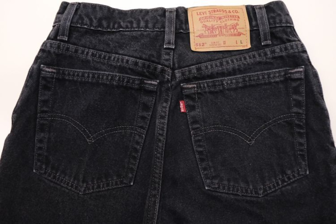 1853年"Levi Strauss"によりサンフランシスコで設立された"Levi's" より、90年代アメリカ製512ブラックデニムパンツ。1997年5月製造のアイテムで、ハイウエストフィットにゆとりのある腰まわり、太めのワタリから裾口にかけてしっかりとテーパードを効かせたシルエットが特徴です。女性らしさを引き立て、幅広いスタイリングにマッチするシルエットです。とくに目立ったダメージはございませんが、僅かな着用感が見られますのであくまでUSED品とご確認の上ご検討ください。ブラックカラーのデニムはベーシックとして着回しやすく、永くご愛用いただけると思います。