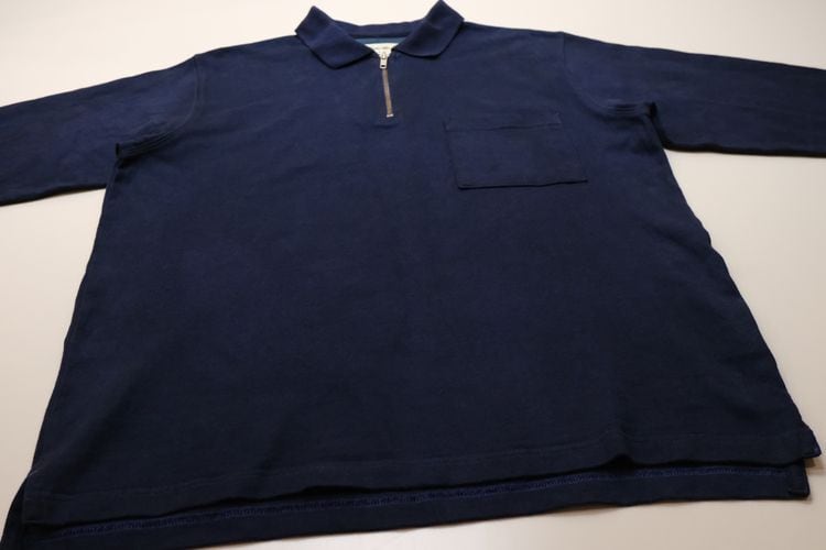 1920年ワシントン州シアトルで自身の名を冠し創設された"EDDIE BAUER"『エディー・バウアー』から90年代頃のヘンリーネック・スウェット。ハイゲージでしっかりと編み立てられた100%コットンの素材感に、ダークネイビーの落ち着いた色味が大人っぽい雰囲気アイテムです。細すぎず太すぎないすっきりめのシルエット、プル・オーバーの襟付きクォーター・ジップ、小ぶりな胸ポケットなどシンプルなデザインも魅力となってます。着用の上で問題となるダメージや汚れはございませんが、全体的に着用による色褪せのあるUSEDコンディションですのでご理解の上ご検討ください。身体のラインに馴染むコットン・ニット独特な着心地の良さに、スタイルを選ばないシンプルなデザインは幅広いコーディネートにお使いいただけそうです。