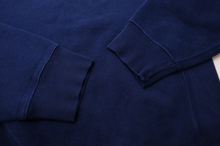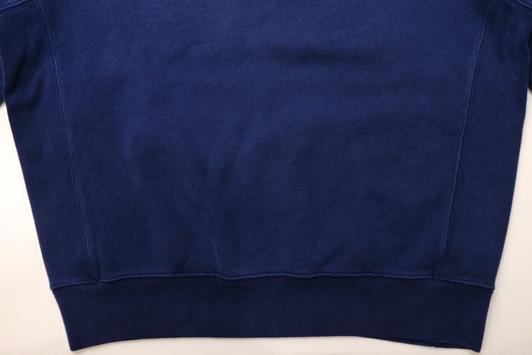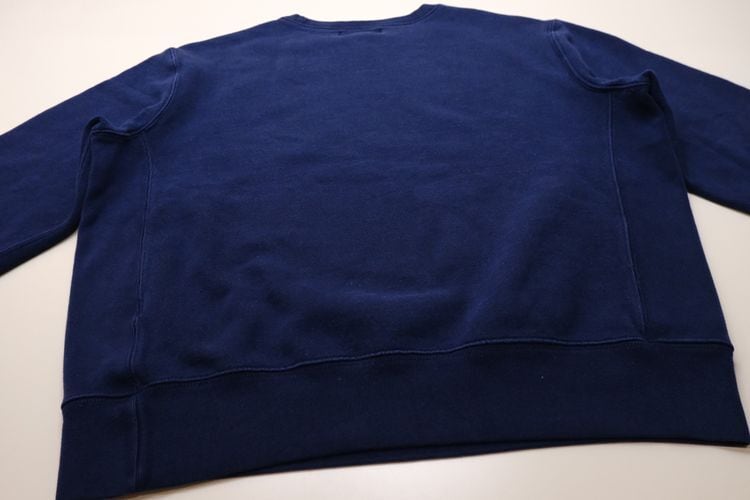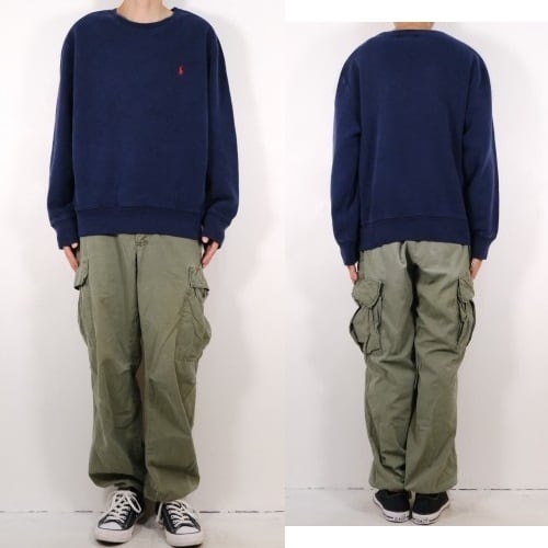 1967年にニューヨークで設立された世界的なファッション・ブランド"Ralph Lauren"から90年代後期頃と思われるスウェット。厚手でしっかりとしたコットン×ポリエステル(84/16)混紡素材を使用し、着用と経年により変化したダークネイビーの色味と表情に風合いの良さを感じるアイテムです。肩幅に対して身幅が広いラフなシルエット、左胸に刺繍で施されたレッドのワンポイント"PONY"によるアクセント、そしてラルフ・ローレンのスウェットとしては珍しい両脇のリブ編みが大きな特徴となってます。着用の上で問題となるダメージ汚れはございませんが、全体的に着用による色褪せや毛羽立ちのあるUSEDコンディションですので普段から古いものをご愛用の方におすすめ致します。カジュアル感がありながらも落ち着いた色味による大人っぽい雰囲気がたいへん良く、細すぎず太すぎない程よいシルエットのため幅広い方におすすめできる1本です。