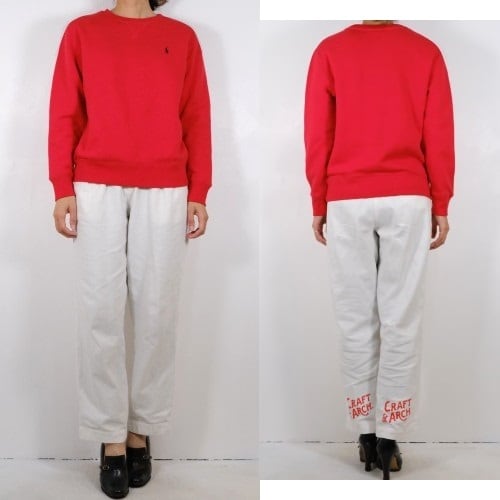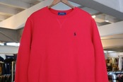 POLOラルフローレンの真っ赤なスウェット。女性がバランスの良く着用できるサイズ感のボーイズ・アイテムです。全体的にややすっきりとした印象のスタンダードなシルエット。首もとのガゼットと胸のポニー刺繍がポイントになったデザイン。ウォッシュ加工の生地が柔らかくこなれた風合いを演出し、裏起毛の温かな着心地も魅力です。ほぼ未使用品と思われるたいへん綺麗なコンディションです。ぱっと鮮やかな赤の色みがコーディネートを明るく彩り、一枚でも差し色としても活躍してくれそうです。