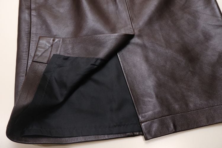 90s agnès b. dark brown leather Skirt