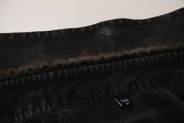1948年にドイツのビーレフェルトで創業されたメンズ・ウェア・ブランド"DORNBUSCH"から90年代頃と思われるシャツ。肌触りの良さと温かみに優れた細畝のコーデュロイ(表記なし:100%コットン)を使用し、ベージュからブラウン、ブラックへとグラデーションのように並ぶストライプ柄が渋い雰囲気のアイテムです。肩幅と身幅のバランスにクセのないすっきりめのシルエット、襟や前立て、カフス、ヨークの切り替え、しっかりとと柄合わせのされた左胸ポケットも特徴となっています。着用の上で問題となるダメージや汚れはございませんが、左袖に小さな汚れのあるUSEDコンディションですのでご理解の上ご検討ください。※偏った畝の潰れや色ムラはありません。コーデュロイのぬくもりとグラデーション・ストライプの奥行きある表情がたいへん良く、シンプルなアウターやデニム、チノなどとも好相性の1本です。