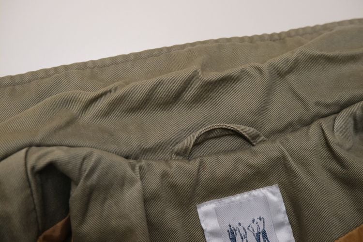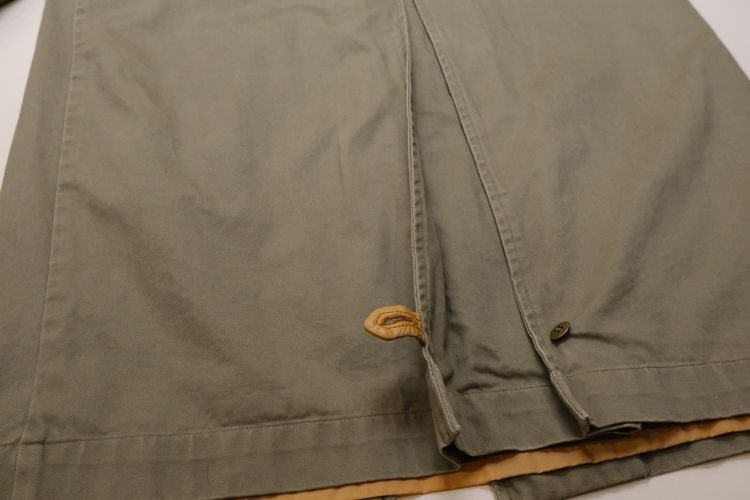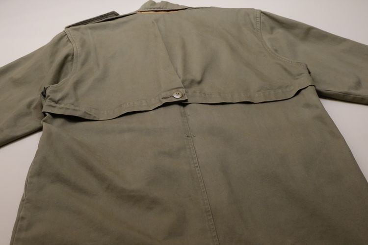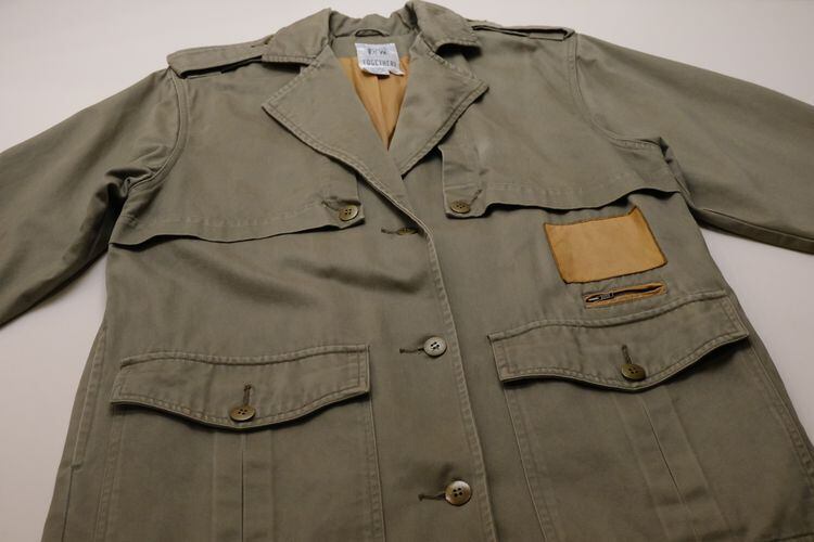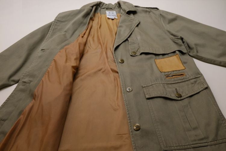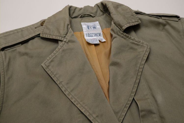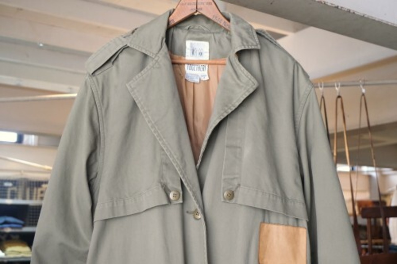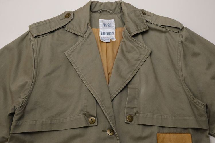 80年代"TOGETHER!"レザートリムのマキシ丈サファリコート。ユニークで凝ったディテールが詰まった、古いものならではのデザインが目を引く一品です。テーラードスタイルのラペルにエポレット、アンブレラヨークが特徴のオーバーサイズのコクーンシルエット。左身頃のあしらわれたラベルやミニジッパーポケット、ラペル裏やスリットアジャスターにレザーが使われアクセントになっています。マットな質感のコットンツイル生地に総裏地付きで、スムースで温かな着心地でお楽しみいただけます。コンディションは良く、とくに目立ったダメージは見られません。ざっくり羽織るだけで存在感があり、人と違ったものをお探しの方にお勧めの逸品です。