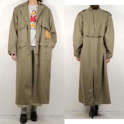 80's TOGETHER! leather trimmed maxi safari Coat