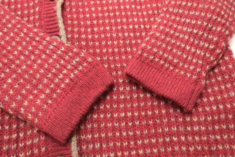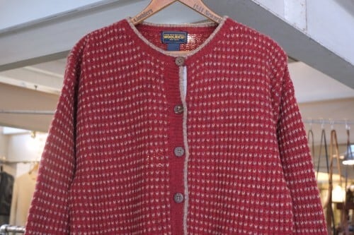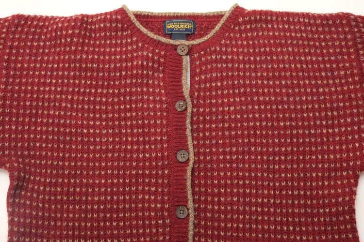 1830年に創業されたアメリカ最古のアウトドア・ブランド"Woolrich"より、2000年代のウールカーディガン。前立てにあしらわれたアッシュブルーカラーのボタニカル柄ジャガードテープがポイントになった、素朴なデザインにぬくもりを感じる一品です。深いアームや絞りのないリブ、セットインスリーブが特徴的なクラシックフィットシルエット。伝統的なバーズアイパターンに、ミックスカラーの縁取りがポイントになったデザイン。100%ウールの毛糸を用い、空気を含ませ編み上げられたニットはふわり柔らかく、軽く温かな着心地でお楽しみいただけます。とくに目立ったダメージはございませんが、多少の着用感が見られますのであくまでUSED品とご確認の上ご検討ください。クラシックなスタイルは流行り廃りなく、ベーシックとして永くご愛用いただけると思います。