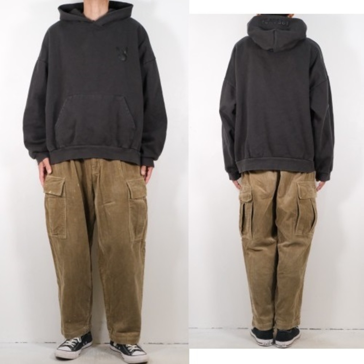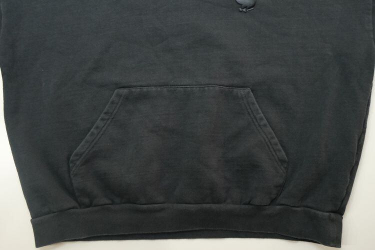 1980年にカリフォルニア州アナハイムで創業された西海岸のサーフ&ストリート・カルチャーに根ざしたブランド"Pacific Sunwear of California"からパーカー。かなり厚手でタフなコットン×ポリエステル(80/20)混紡素材を使用し、着用と経年により変化したアッシュブラックの渋くこなれた色味に風合いの良さを感じるアイテムです。肩幅と身幅のサイズが同じで着丈がやや短いオフショルダーのボックス・シルエット、左胸に施された"PLAYBOY"のアイコンであるラビット・ヘッド、フードに"PLAYBOY"ロゴ・フォントの立体ラバー・プリントがアクセントとなっています。着用の上で問題となるダメージや汚れはございませんが、後部の左袖に薄っすらとした汚れ、全体的に着用感のあるUSEDコンディションですのでご理解の上ご検討ください。幅広いボトムスにさらっと合わせるだけで個性的な雰囲気を演出でき、オーバーサイズのざっくりとした着こなしを楽しんでいただける1本です。
