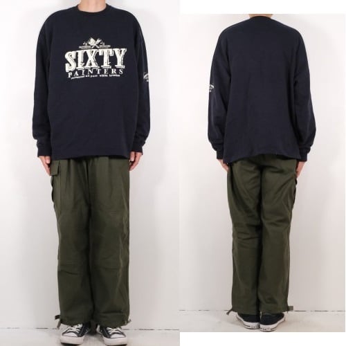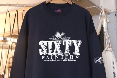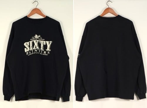 イタリアのローカル・ブランドと思われる"SIXTY PAINTERS"2000年代後期頃のイタリア製スウェット。やや厚手でやわらかな肌触りの100%コットンを使用し、単色ブラックの色味にスマートな雰囲気を感じるアイテムです。リラックスした着用に適したオフショルダーのざっくりとしたシルエット、裾口にリブを施さないストレート・ヘム、左袖に"JEANS AXLE WORKS"、フロントに"SIXTY PAINTERS"のペイント・ショップを模したプリントが目を惹く仕上がりとなっています。着用の上で問題となるダメージや汚れはございませんが、全体的に毛羽立ちのあるUSEDコンディションですのでご理解の上ご検討ください。幅広いボトムスにさらっと合わせるだけでワーク・スタイルに程よく抜け感を添えつつ、ラフになりすぎない落ち着いた印象を演出できる1本です。