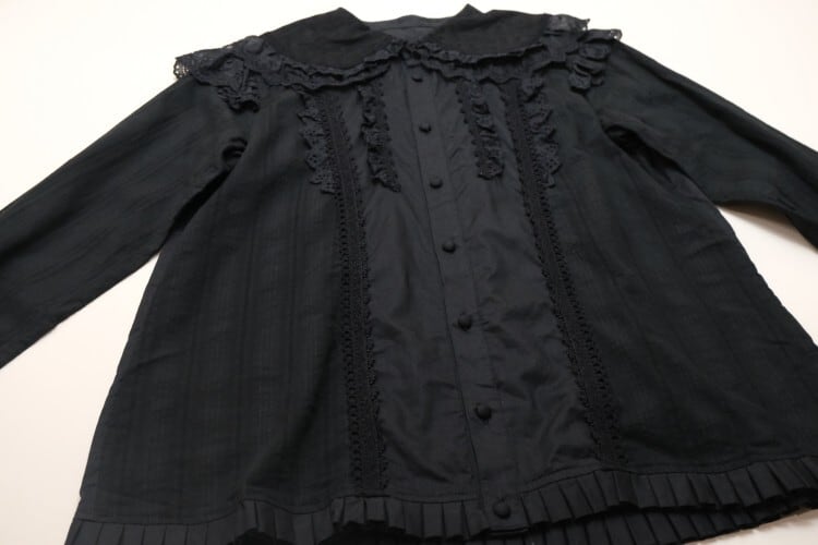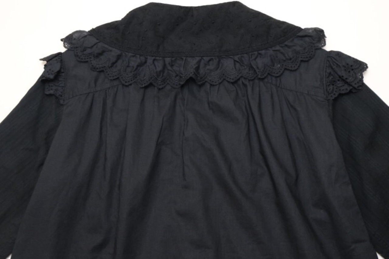 00's black large collar lacy Blouse