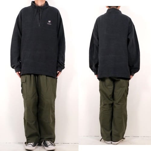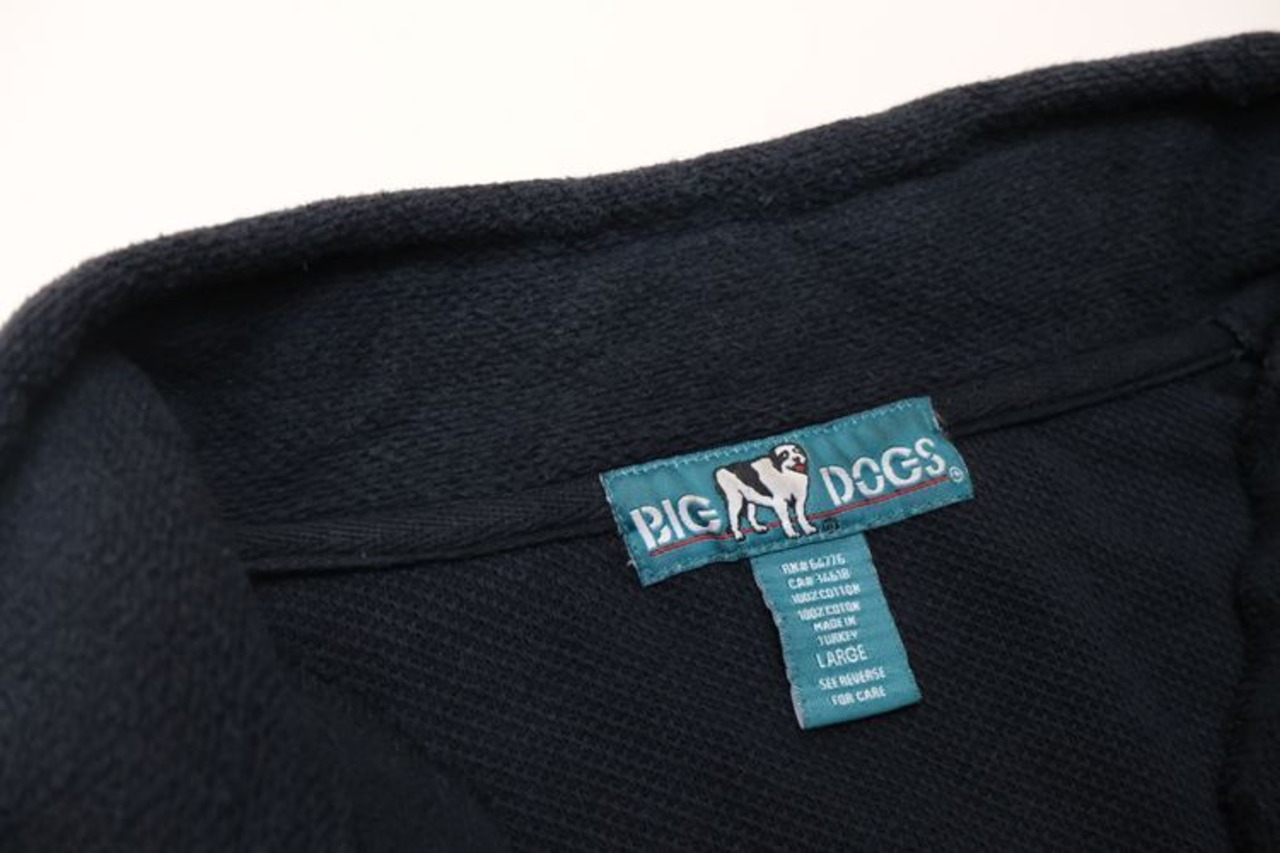 アウトドア・ブランドの老舗"KELTY"を創業した"Dick Kelty"の息子である"Richard Kelty"によって1983年カリフォルニア州サンタバーバラで誕生した"BIG DOGS by SIERRA WEST"から2000年代初期頃と思われるジャケット。程よい厚さで凹凸のある100%コットン・パイルを使用し、フェードしたブラックの渋い色味にふっくらとした素材の表情がやわらかな印象のアイテムです。リラックスした着用に適したオフショルダーのボックス・シルエット、クウォーター・ジップのプルオーバー、左胸に刺繍で施された"BIG DOGS"ロゴがアクセントとなっています。着用の上で問題となるダメージや汚れはございませんが、全体的に着用による色褪せや毛羽立ちのあるUSEDコンディションですのでご理解の上ご検討ください。※偏ったパイルの潰れはありません。幅広いボトムスに合わせることのできる使い勝手の良さと、スタイリング全体をほどよくまとめてくれる汎用性の高さが魅力のおすすめの1本です。