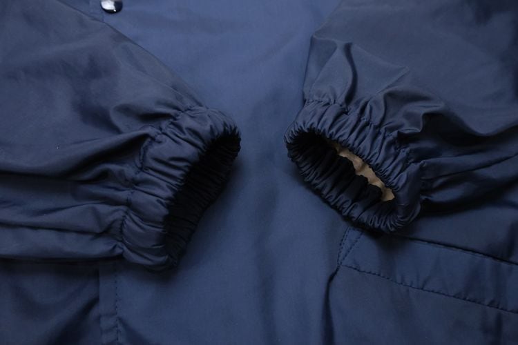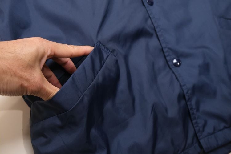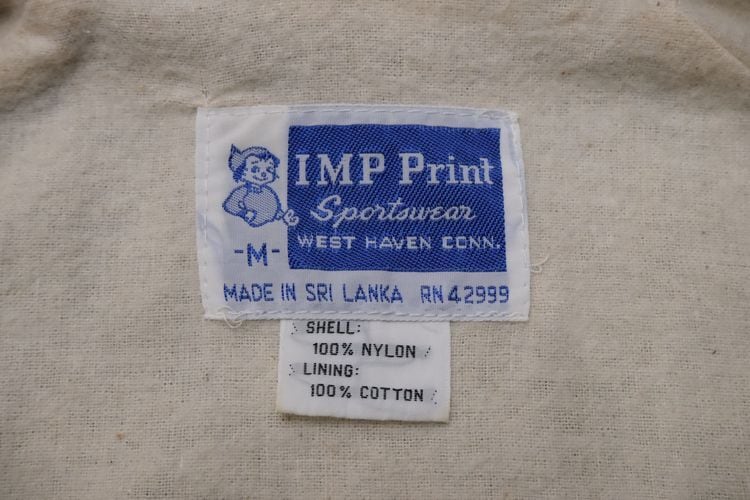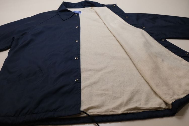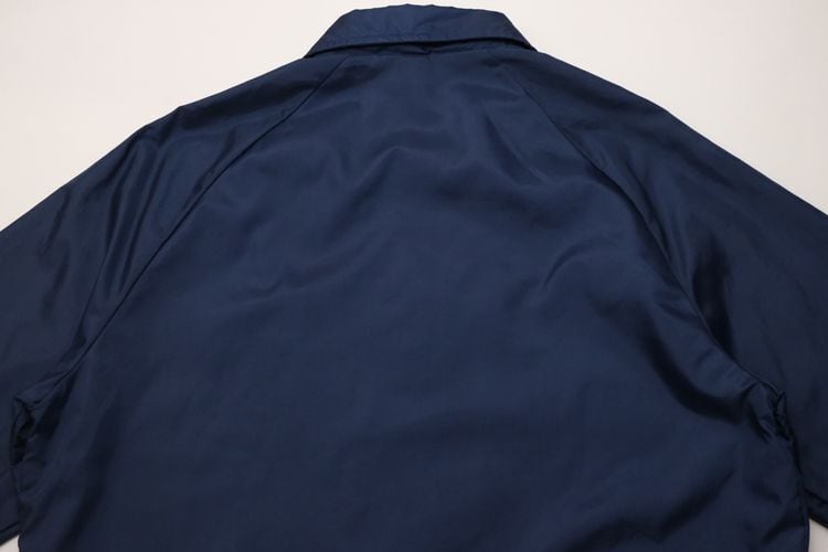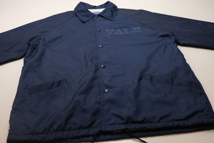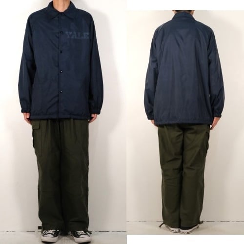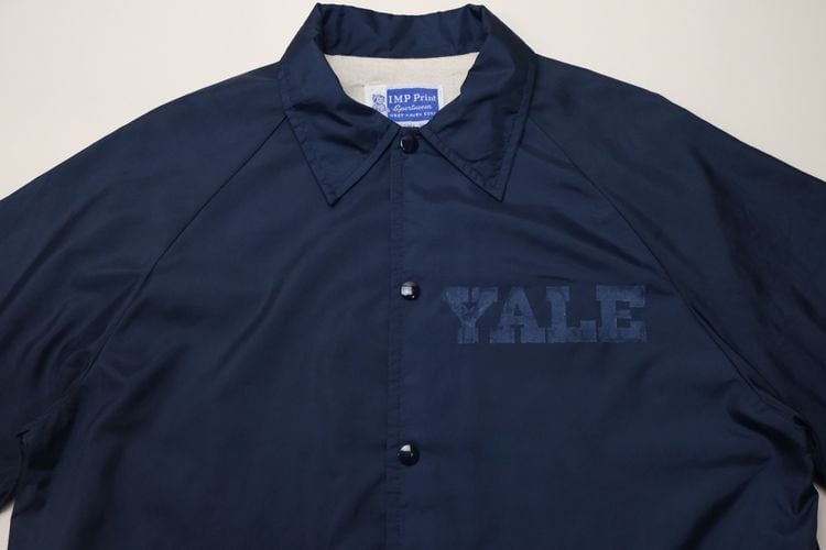 1970年代初期にコネチカット州ウェストヘブンで設立された"BERNBLUM INTERNATIONAL"から"IMP Pint"ラインの90年代初期頃と思われるコーチ・ジャケット。シェルに薄手で張りのある100%ナイロンを使用し、薄手の100%コットンが袖口まで張られたライニングによるほんのりと温かな着心地のアイテムです。程よいボリュームのあるシルエットにすっきりとした見た目を生むラグラン・スリーブ、シンプルなボタン・アップ×スラッシュポケット、左胸にアイビー・リーグの名門"YALE UNIVERSITY"の消えかけて薄っすらと浮かぶ"YALE"の文字がアクセントとなっています。着用の上で問題となるダメージや汚れのない良いコンディションですが、あくまでUSED品ですのでご理解の上ご検討ください。幅広いトップ×ボトムスにさらっと羽織ることのできる気軽なカジュアル感が良く、深みのあるネイビーの落ち着いた色味と程よい個性あるプリントの組み合わせがたいへん魅力的な1本です。