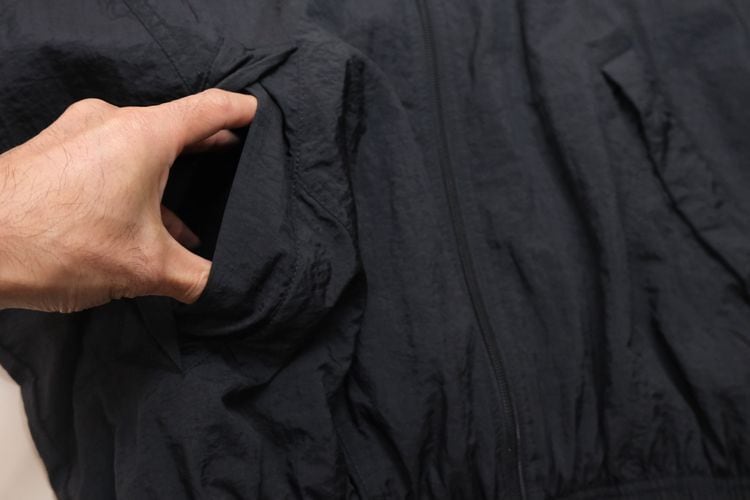 □material: shell- 100% nylon/ body lining- 65% polyester, 35% cotton/ sleeve lining- 100% polyester