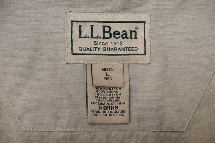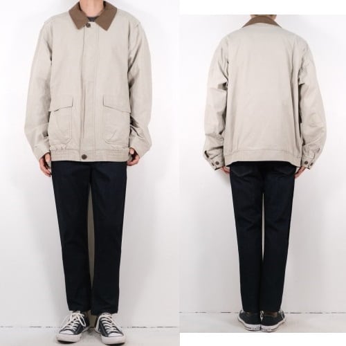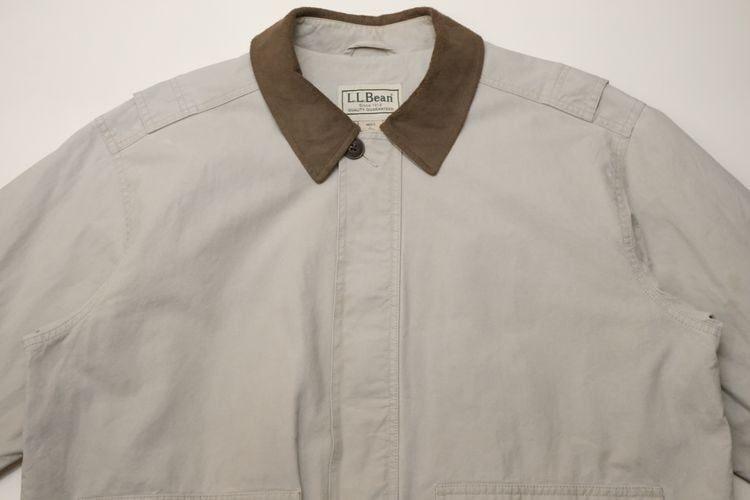 1912年"Leon Leonwood Bean"によりメイン州フリーポートで創業された"L.L.Bean"から2000年代初期頃のバーン・ジャケット。やや薄手でぱりっと張りのある100%コットンを使用し、着用と経年によって淡くフェードしたライトグレーの色味と素材の表情にこなれた風合いの良さを感じるアイテムです。リラックスした着用に適したボリュームあるシルエット、後部のアクション・プリーツ、フェイク・スエードのカラー、フラップ×スラッシュのダブル・ポケット、ボディ・ライニングにコットン、スリーブ・ライニングにナイロンが張られた仕上がりも魅力となっています。着用の上で問題となるダメージ汚れはございませんが、襟に毛羽立ち、全体的に着用感のあるUSEDコンディションですのでご理解の上ご検討ください。スラックスと合わせた綺麗めのスタイルから、デニムやチノ・パンツに合わせたカジュアルなコーディネートまで幅広く楽しんでいただける大人な印象のジャケットです。