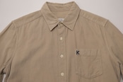 1970年に高田賢三により設立されたフランスのファッションブランド"KENZO"より、2000年代ベージュカラーのコーデュロイシャツ。シンプルなボディに、胸ポケットの"K"刺繍がポイントになったアイテムです。全体的にクセのないスタンダードなシルエットのドレスシャツスタイルに、ブランド刻印入りのボタン。細畝コーデュロイの温かく柔らかな風合いが良く、明るい色みがロングシーズンのスタイリングに馴染みます。とくに目立ったダメージはございませんが、多少の着用感やくたびれ感が見られますのであくまでUSED品とご確認の上ご検討ください。流行り廃りのないベーシックスタイルのため永くご愛用いただけ、一枚でもジャケットのインナーとしても活躍する汎用性の高さが魅力の一枚です。