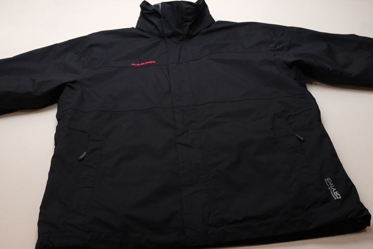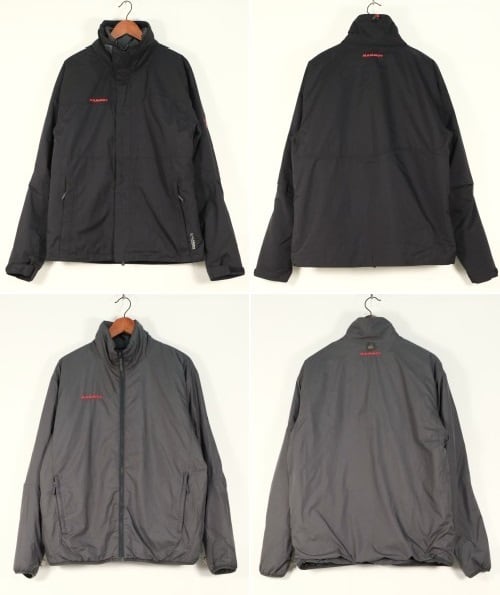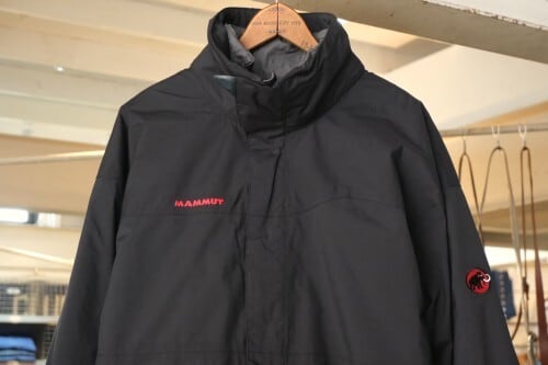 1862年"Kaspar Tanner"によりスイスで設立された老舗クライミング・ブランド"MAMMUT"『マムート』から2000年代頃のジェケット。シェルに薄手でぱりっと張りのある100%ポリエステル(DRYtech/防水透湿素材)を使用し、単色ブラックで仕上げたスマートな雰囲気に魅力のあるアイテムです。ざっくりとした着用に適したゆとりのあるオフショルダー・シルエット、脇のベンチレーション、左袖に刺繍で施された"MAMMUT"のマンモス・ロゴ、そして取り外し可能なライナーはナイロン・ジャケットとして異なるスタイルを楽しんでいただけます。着用の上で問題となるダメージ汚れはございませんが、全体的に着用感のあるUSED品ですのでご理解の上ご検討ください。また、取り外し可能なフードは欠損していますのでご注意ください。※年代もののため"DRYtech"としての機能は低下しています。幅広いボトムスに合わせやすいシンプルなデザインとブラックのカラーはタウン・ユースからアウトドアまで幅広く活躍し、①ライナー付きのジャケット、②ライナーを外したシェルのみのジャケット、③ライナーのみのジャケットとして、3通りの使い分けができるたいへん便利な1点です。
