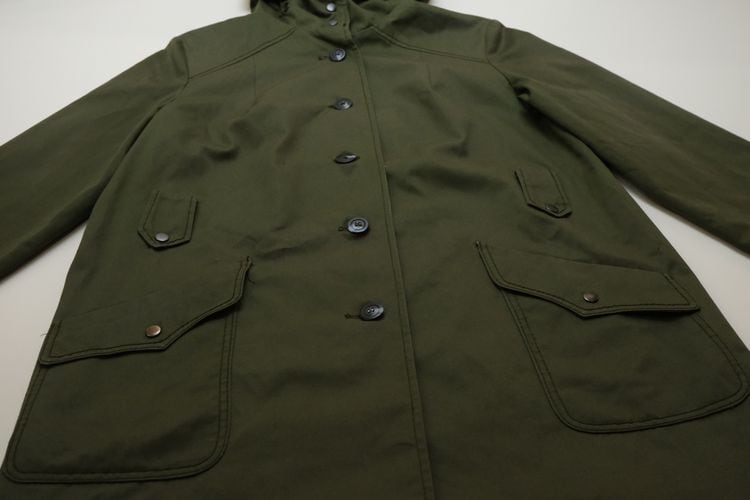 80年代オリーブ色ミリタリースタイルのフード付きコート。モッズコートスタイルを品良く仕上げたレディースのライトコートです。プレーンなIラインシルエットのミドル丈、ベルトループと特徴的なフォルムのフラップポケットがポイントになったデザイン。ポリエステル×コットン混紡のシェルに総裏地付きが珍しい作りで、軽い着心地と袖通しの良さが魅力です。とくに目立ったダメージはございませんが、多少の着用感が見られますのであくまでUSED品とご確認の上ご検討ください。タイムレスなデザインは飽きが来ず、ロングシーズン着用いただける一品です。