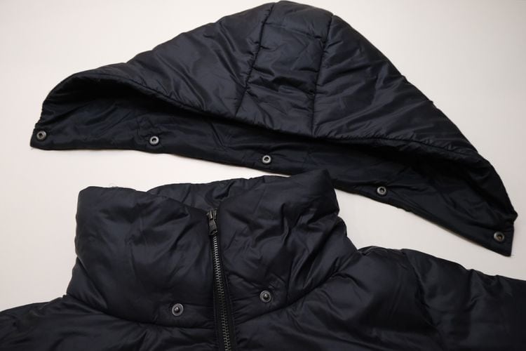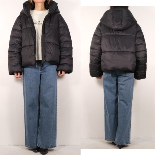 1978年にカリフォルニア州ミルバレーで創業された"BANANA REPUBLIC"より、ブラックカラーの中綿入りジャケット。コンパクトな着丈が特徴的な、ボリュームシルエットのナイロンジャケットです。フロントジップアップに風を防ぐ袖口のリブ、取り外し可能なフード付きのデザイン。100%ポリエステルのフィリングは軽量で温かな着心地と、お手入れのしやすさが魅力となっています。とくに目立ったダメージはございませんが、多少の着用感が見られますのであくまでUSED品とご確認の上ご検討ください。無駄を省いたミニマルなデザインはコーディネートやシーンを選ばず活躍してくれます。