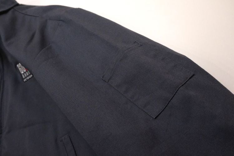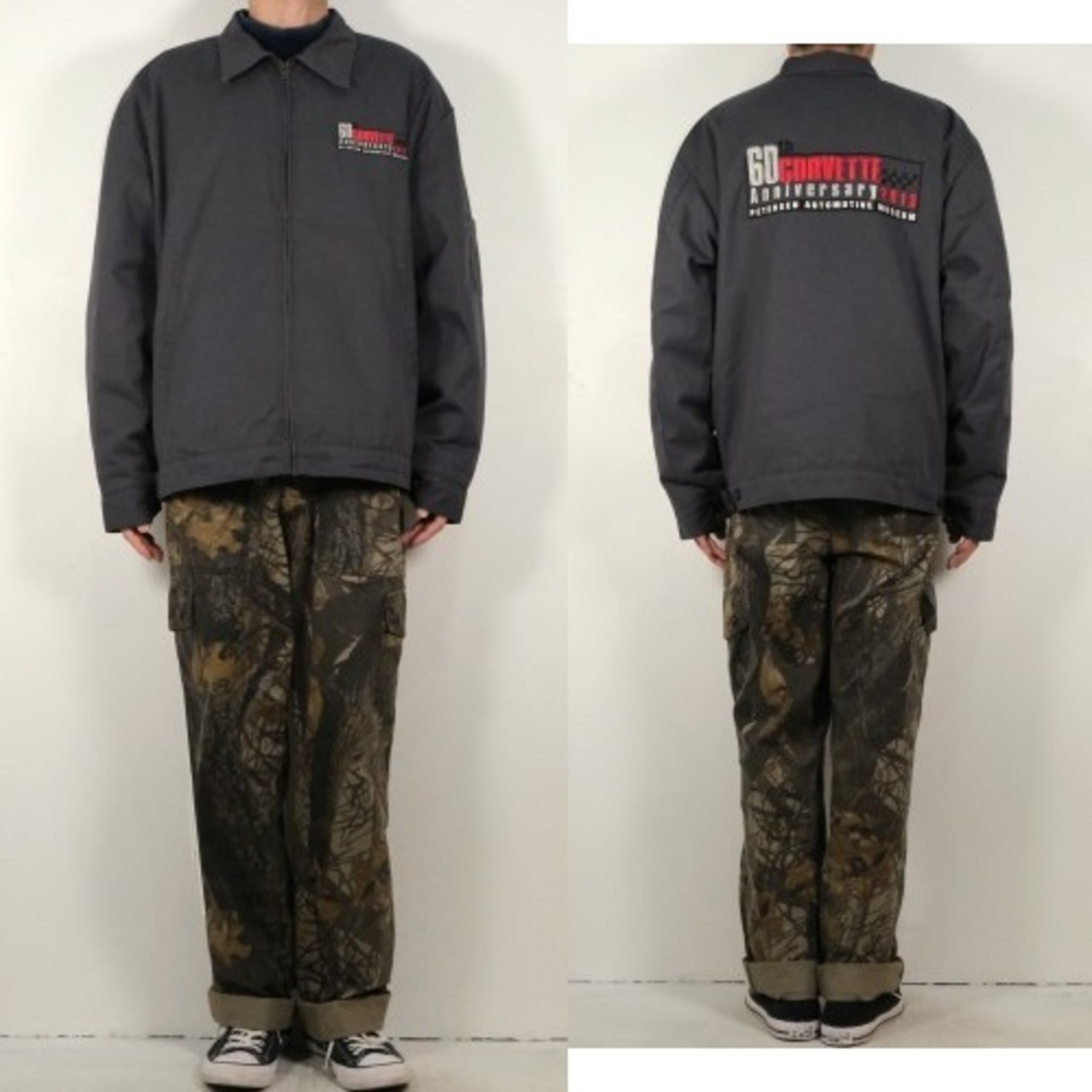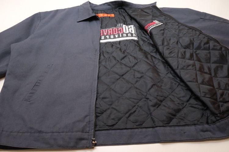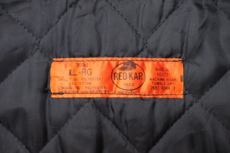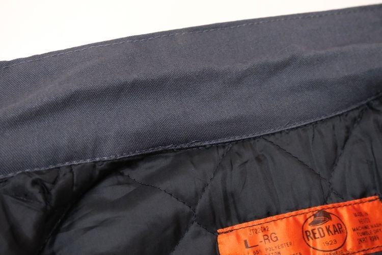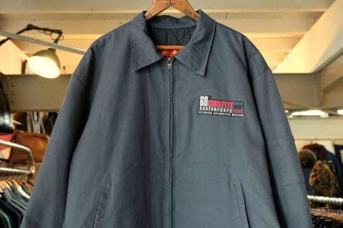 1923年にテネシー州ナッシュビルで創業されたワークウェア・ブランド"RED KAP"からジャケット。シェルに薄手でぱりっと張りのあるポリエステル×コットン(65/35)混紡素材を使用し、アッシュグレーの渋い色味の良さと袖口までポリエステル・フィリングの入るキルティングが張られた高い保温性に魅力のあるアイテムです。ざっくりとした着用に適したボリュームあるシルエット、シンプルなジップ・アップ×スラッシュ・ポケット、程よい大きさのカラー、裾口のサイド・アジャスター、そしてロサンゼルスに所在する"Petersen Automotive Museum"『ピーターセン自動車博物館』と"Chevrolet Corvette 60th Anniversary"『シボレー・コルベット・生誕60周年』を記念したコラボレーション・ロゴ刺繍が左胸と背面に大きく入るインパクトある仕上がりとなっています。着用の上で問題となるダメージや汚れのない良いコンディションですが、全体的に着用感のあるUSED品ですのでご理解の上ご検討ください。ざっくりと羽織るだけで程よく力の抜けた着こなしを楽しめ、この1本は当時の関係者やイベント向けに用意された希少なものと思われますので気になる方は是非ご検討ください。