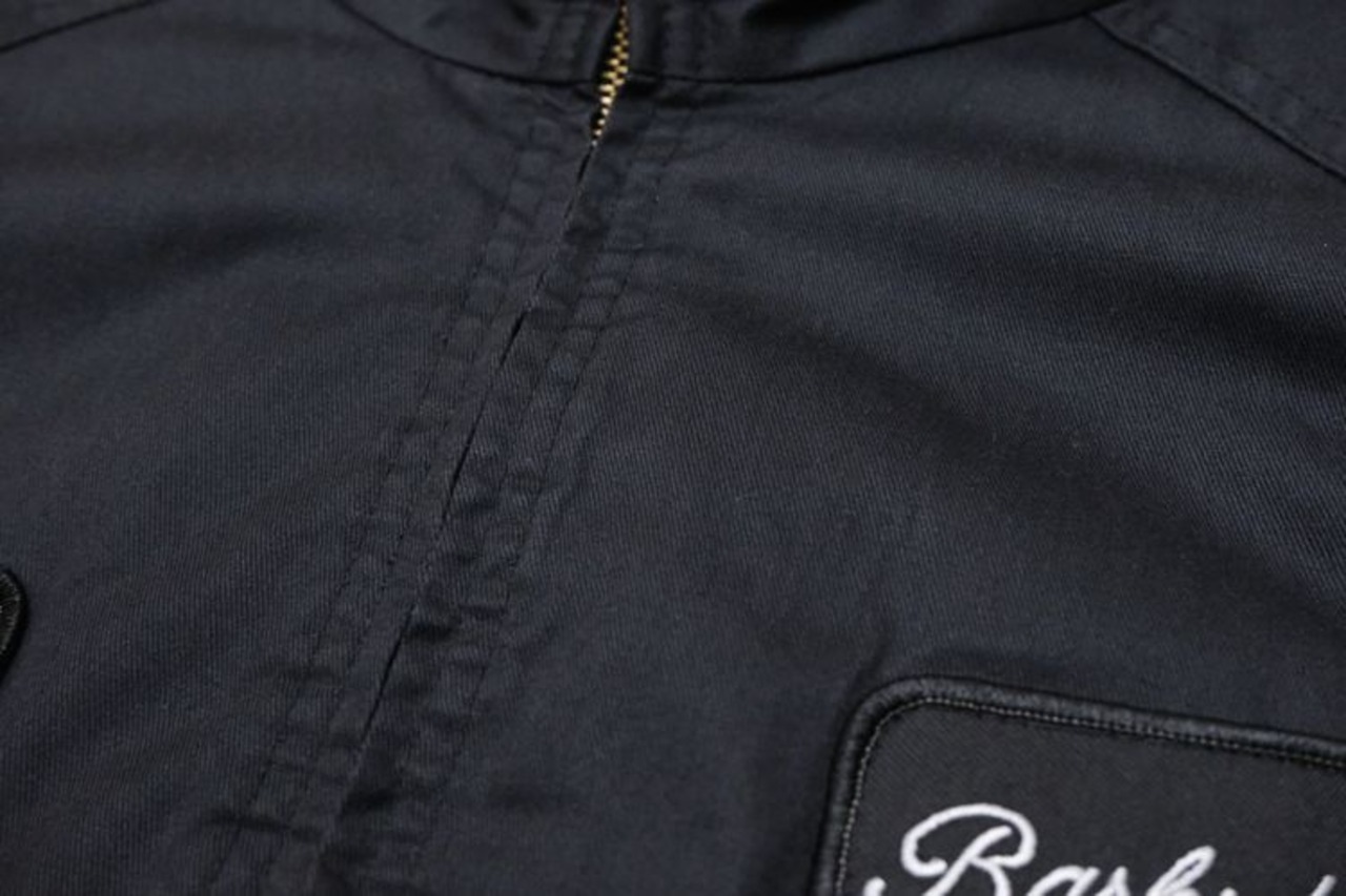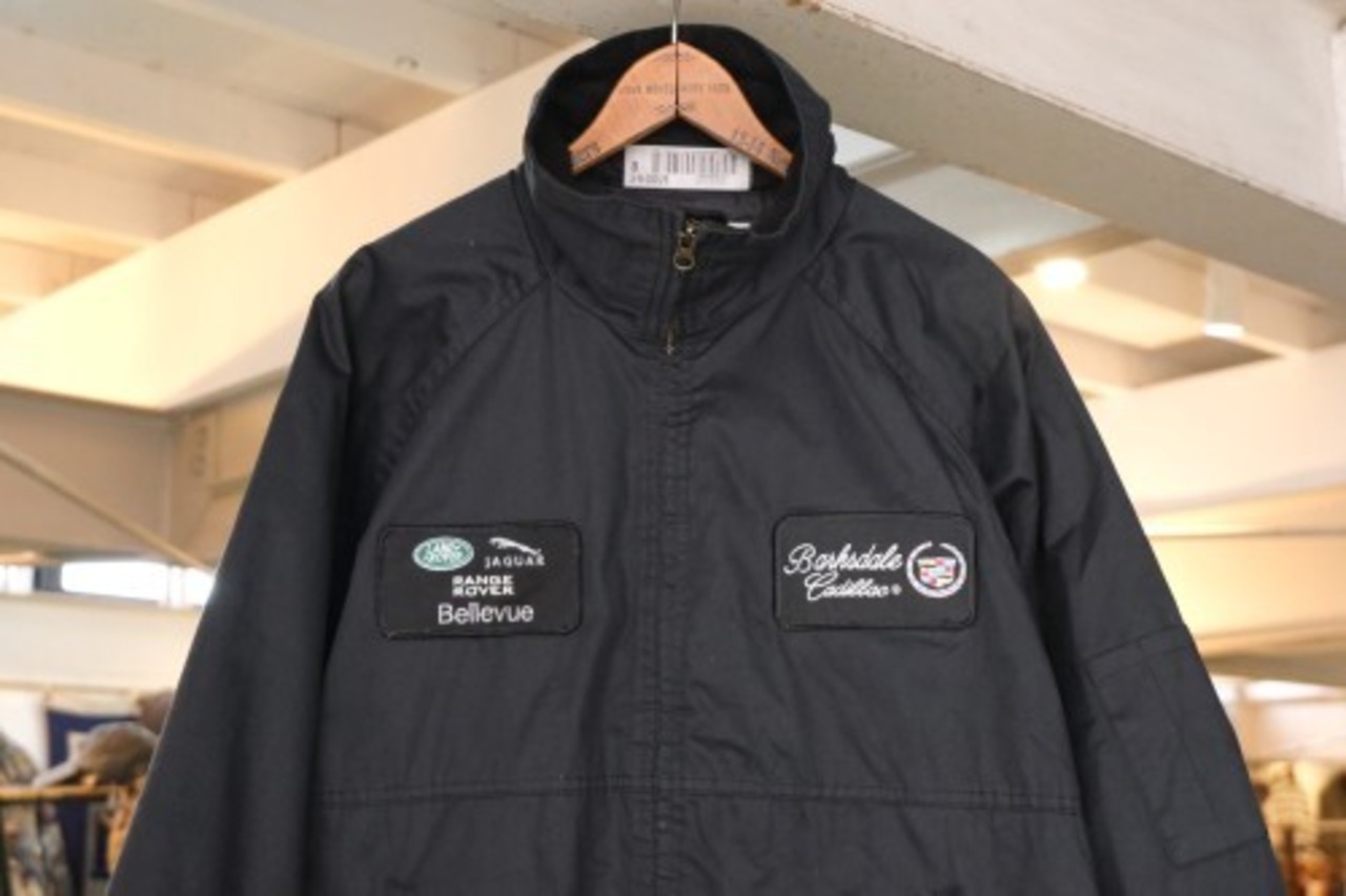 1936年にペンシルベニア州フィラデルフィアで設立されたワーク・ウエアのサプライヤー"aramark"から2000年代頃と思われるジャケット。シェルにやや厚手でぱりっと張りのあるポリエステル×コットン(65/35)混紡素材を使用し、光沢の抑えられた単色ブラックで仕上げられたシンプルでスマートな雰囲気のアイテムです。ざっくりとした着用に適したボリュームあるシルエット、すっきりとした見た目を生むラグラン・スリーブ、ジップアップ・フロント、スタンド・カラー、右袖のペン・ポケット、ハンドウォーマー・ポケットなど実用的なディテールを備えています。内側は袖口までキルティング仕様でフィリングにたっぷりと中綿(ポリエステル)を詰めた保温性にも優れ、右胸には"Land Rover, Jaguar and Range Rover"、左胸に"Cadillac"パッチが配された個性的な仕上がりとなっています。着用の上で問題となるダメージ汚れはございませんが、両肘まわりに薄っすらとした汚れの点在するUSEDコンディションですのでご理解の上ご検討ください。幅広いボトムスと相性良く合わせることができ、寒い季節にさらっと羽織れる実用性の高い防寒着としたいへん重宝するおすすめの1本です。