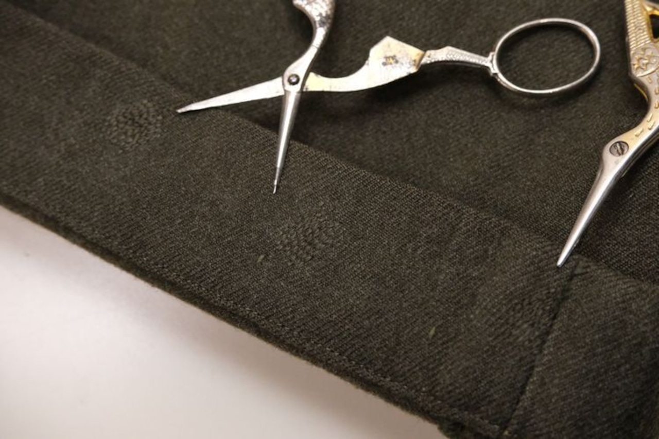 1897年"Clinton C. Filson"によってワシントン州シアトルで誕生したアウトドア・クロージング・ブランド"FILSON"から50年代頃のパンツ。程よい厚さでしっかりと目の詰まった100%ヴァージン・ウール・ツイルを使用し、深みのあるオリーブの色味と、オールドウール特有のマットな質感が相まった、無骨さの中にも品の良さを感じるアイテムです。深い股上にノータックによるゆとりある腰まわり、太いワタリから裾口にかけて緩やかにとテーパードを効かせたワイドなシルエット、コイン・ポケット、股下のガゼット、サスペンダー・ボタンなどのディテールにヴィンテージらしい良さが詰まっています。着用の上で問題となる大きなダメージや汚れはございませんが、左裾口の内側、トップ・ボタンの根元、右股まわり、左膝のインシーム(後部)にダメージ補修の点在するUSED品ですのでご理解の上ご検討ください。ゆったりとリラックスして履いていただける太いシルエットと落ち着いた色味がたいへん良く、シンプルなコーディネートに合わせるだけでヴィンテージ・テイストをプラスしたスタイリングを楽しめる1本です。