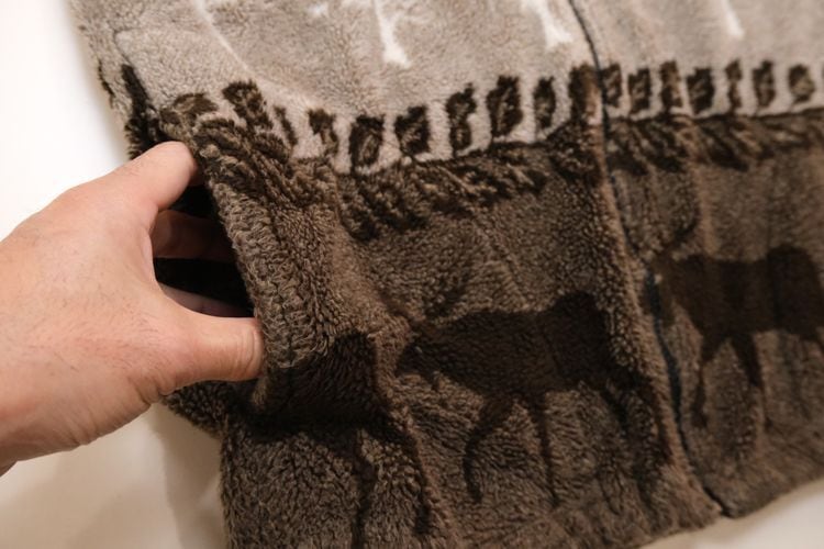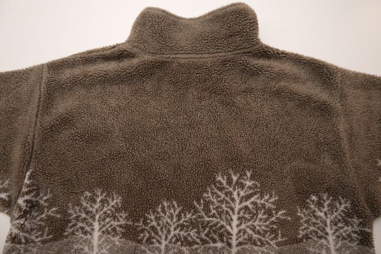 1994年にフロリダ州セミノールで設立されたフリースを専門に扱うアパレル・ブランド"BLACK MOUNTAIN" より、90年代アメリカ製ヘラジカ柄フリースのジップアップジャケット。素朴な風合いの素材感に溶け込む詩的なテキスタイルが目を引くアイテムです。ジップアップ開閉にハイネック、裾にドローコード付きのデザイン。柔らかなフリース生地がくたりと身体に馴染み、軽く温かな着心地でお楽しみいただけます。オーバーサイズの着こなしにもバランス良く着用いただけます。コンディションとして多少の着用感があり、ネックラインや袖口などに生地の潰れ、裏側全面に毛羽立ちなど見られますのでUSED品とご確認の上ご検討ください。ユニセックスでお楽しみいただけ、シンプルな服に羽織るだけで個性を演出できる一品です。