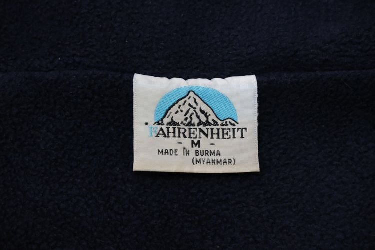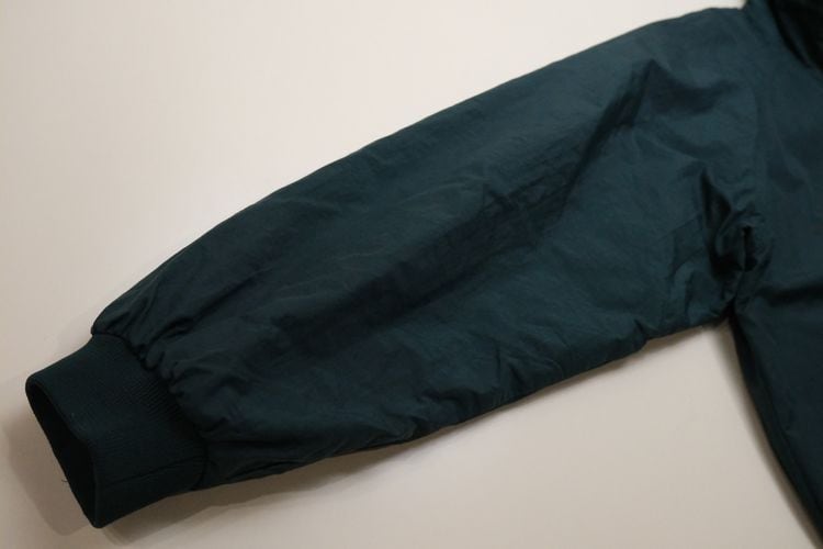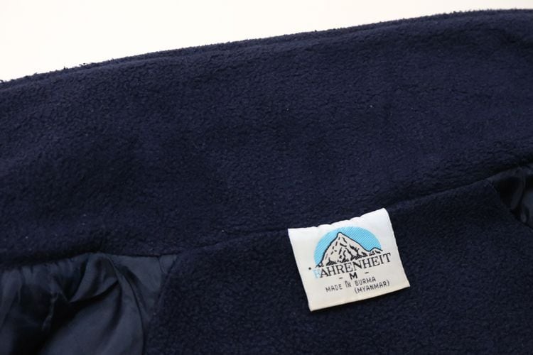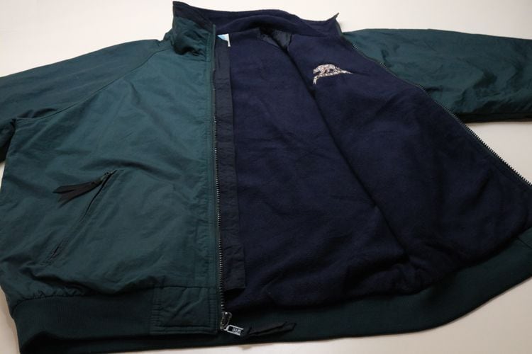 1978年にワシントン州シアトルで創業されたカジュアル・ウエア・ブランド"FAHRENHEIT"から90年代初期頃と思われるウォームアップ・ジャケット。シェルにぱりっと張りのある100%ナイロン、ボディー・ライニングにポリエステル・フリース、スリーブ・ライニングに中綿入りのポリエステルが張られた軽い着心地ながら防寒性に優れたアイテムです。フロント・ジップアップ×ハンドウォーマー・ポケットのシンプルなデザインに、ツートーンで内側にフリースの張られたスタンド・カラー、アームホールが太いラグラン・スリーブのざっくりとしたサイジング、そして左胸に施されたアラスカらしいクマの刺繍が目を惹く仕上がりとなっています。着用の上で問題となるダメージや汚れはございませんが、全体的に着用感のあるUSEDコンディションですのでご理解の上ご検討ください。フォレストグリーンのシェルにダークネイビーのフリース・ライニングによる渋いカラーリングと、流行に左右されないベーシックなデザインで永くご愛用いただけるおすすめの1本です。